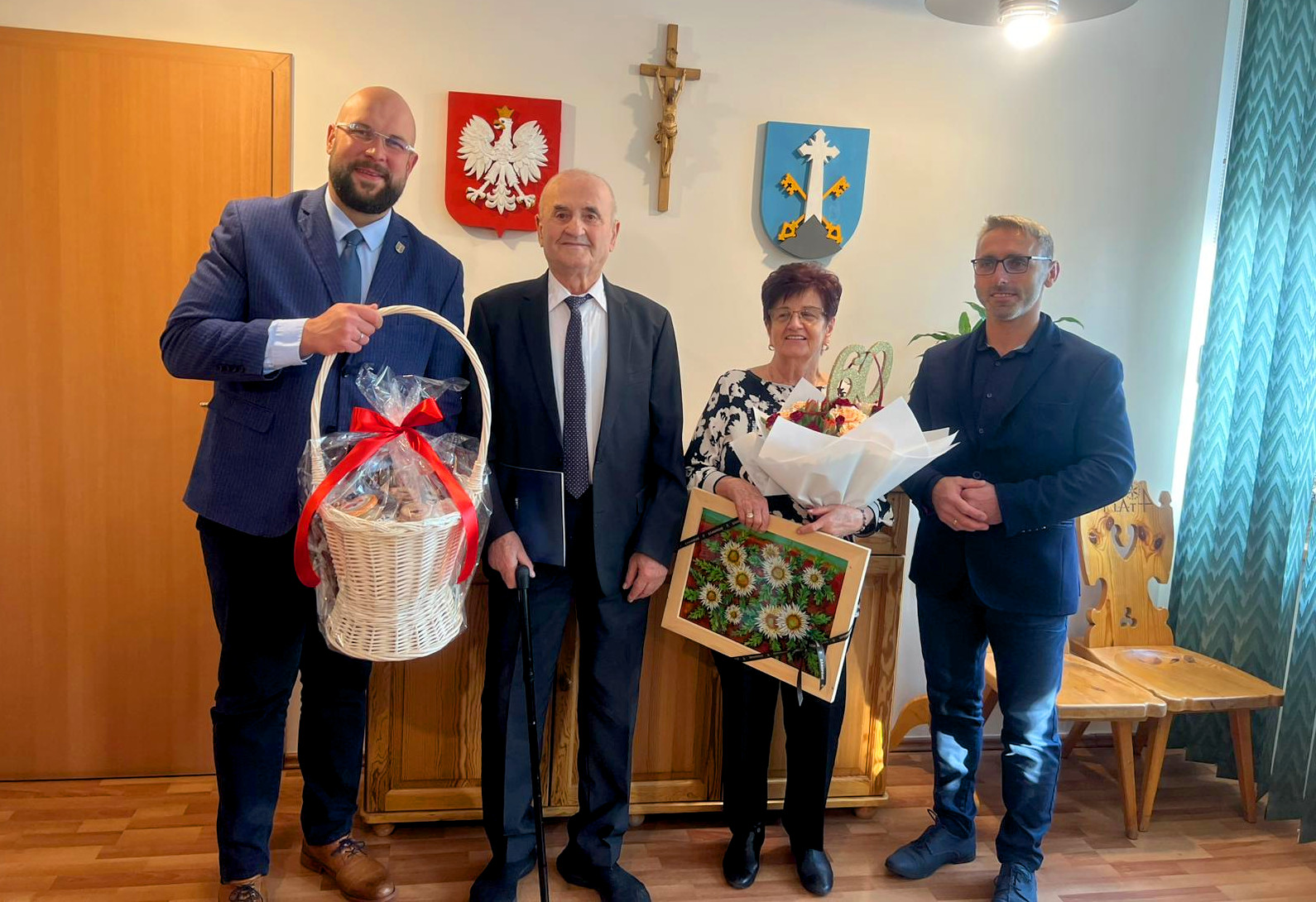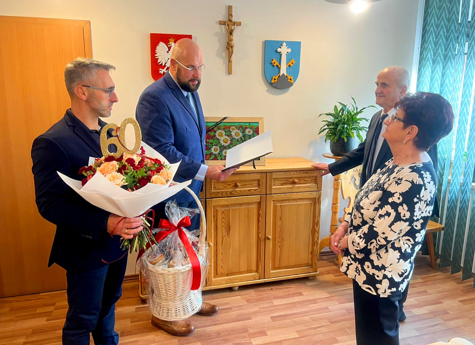 Burmistrz Miasta Łukasz Filipowicz wraz z Przewodniczącym Rady Miasta Grzegorzem Jóźkiewiczem oraz kierownik Urzędu Stanu Cywilnego Zuzanną Liszkowską złożyli serdeczne życzenia i pogratulowali Marii i Janowi Gomółkom z okazji ich wyjątkowego jubileuszu!