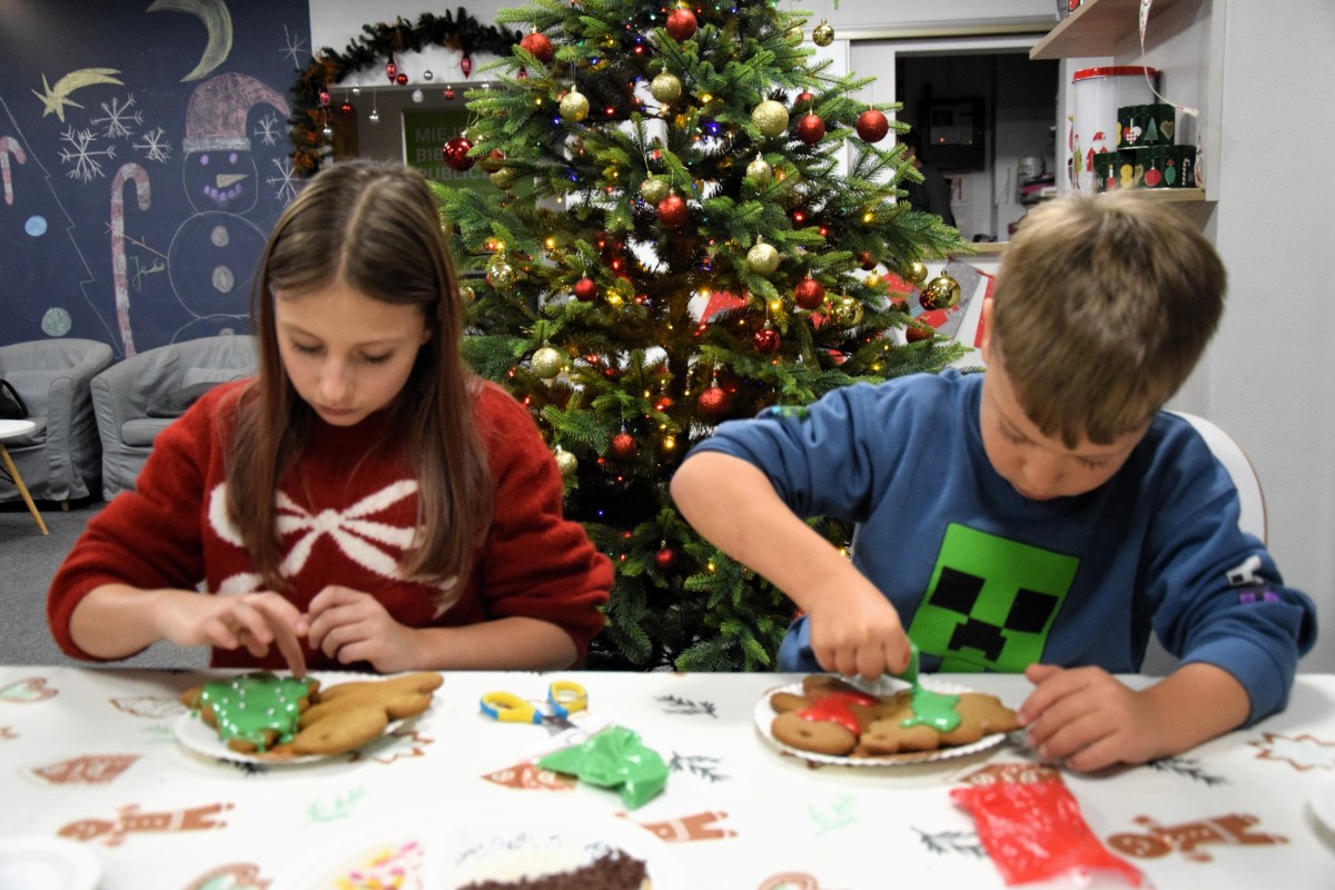 Oddział dla Dzieci i Młodzieży zorganizował warsztaty bożonarodzeniowe „Aniołki, bombki i pierniki – razem tworzymy klimat świąt”. Dzieci i rodzice wspólnie dekorowali pierniczki, ubierali choinkę oraz czytali fragmenty książki Daniela Nappa „Pan Brumm obchodzi Boże Narodzenie”.
