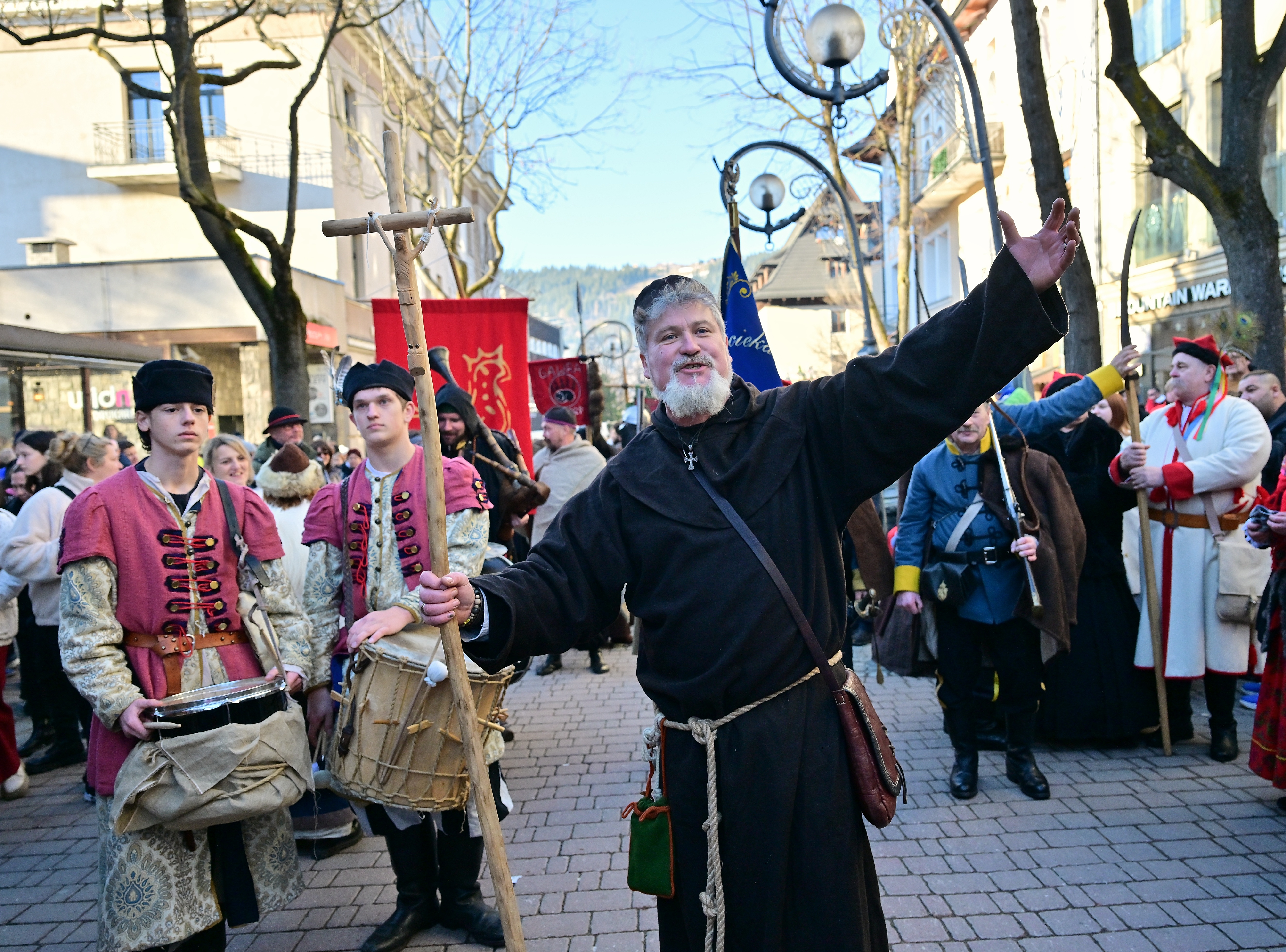 W sobotę – drugim dniu Jarmarku – Zakopane przeniosło się w dawne czasy. Ulicami miasta przeszedł uroczysty pochód grupy rekonstrukcyjnej Bractwa Historycznego „Wataha Rycerska”, budząc powszechny zachwyt wśród publiczności. Widowiskowe sceny walk dawnych wojów i rycerzy oraz inscenizacja koronacji Bolesława Chrobrego zostały przygotowane w ramach Obchodów 1000-lecia Korony Polskiej.