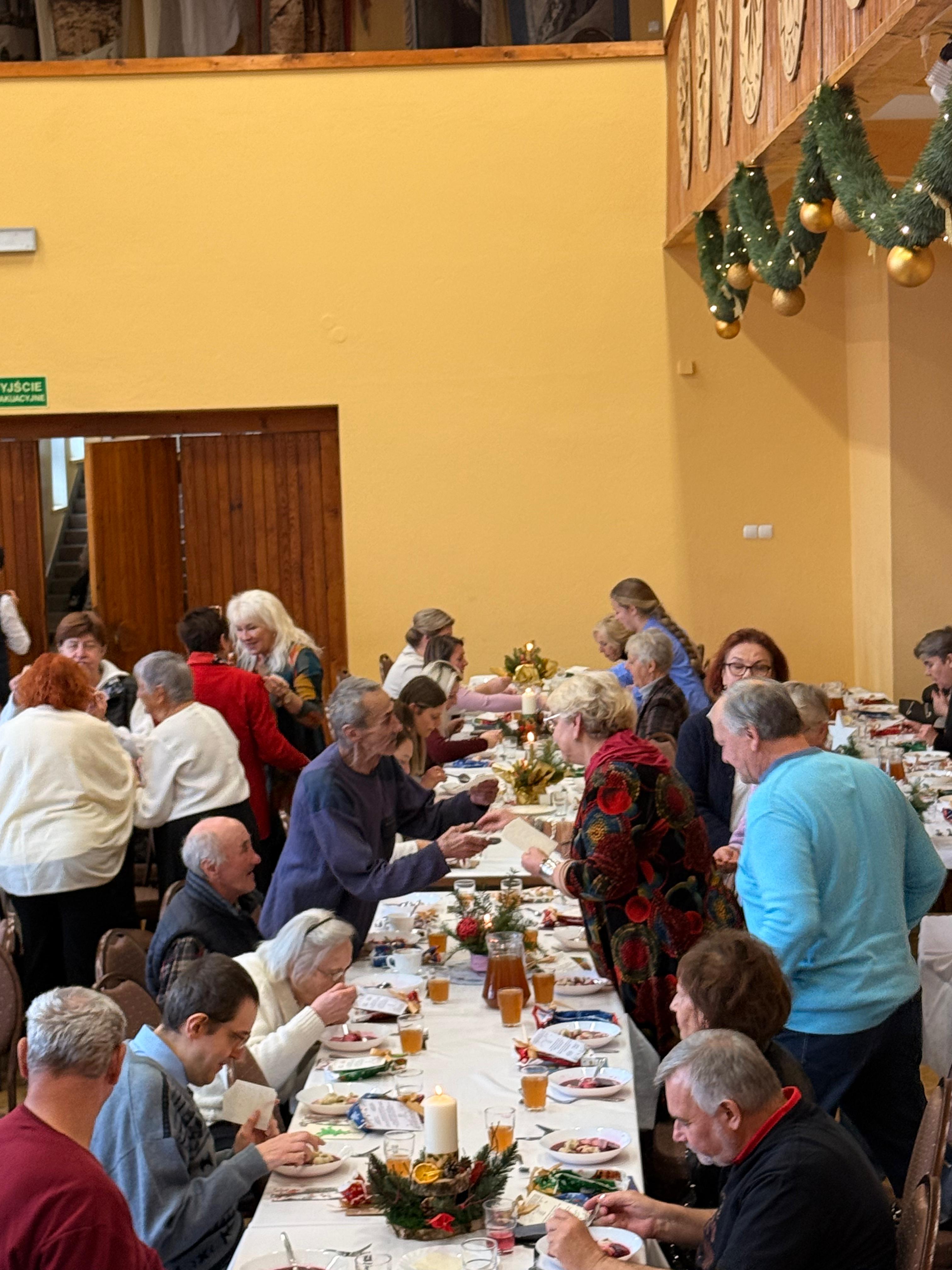 Wspólne odczytanie fragmentu Ewangelii o Bożym Narodzeniu, poświęcenie opłatków oraz składanie świątecznych życzeń stworzyły wyjątkowy, pełen bliskości moment. Całości dopełniło kolędowanie oraz dzielenie się opłatkiem, które sprzyjały rozmowom i budowały poczucie wspólnoty.
