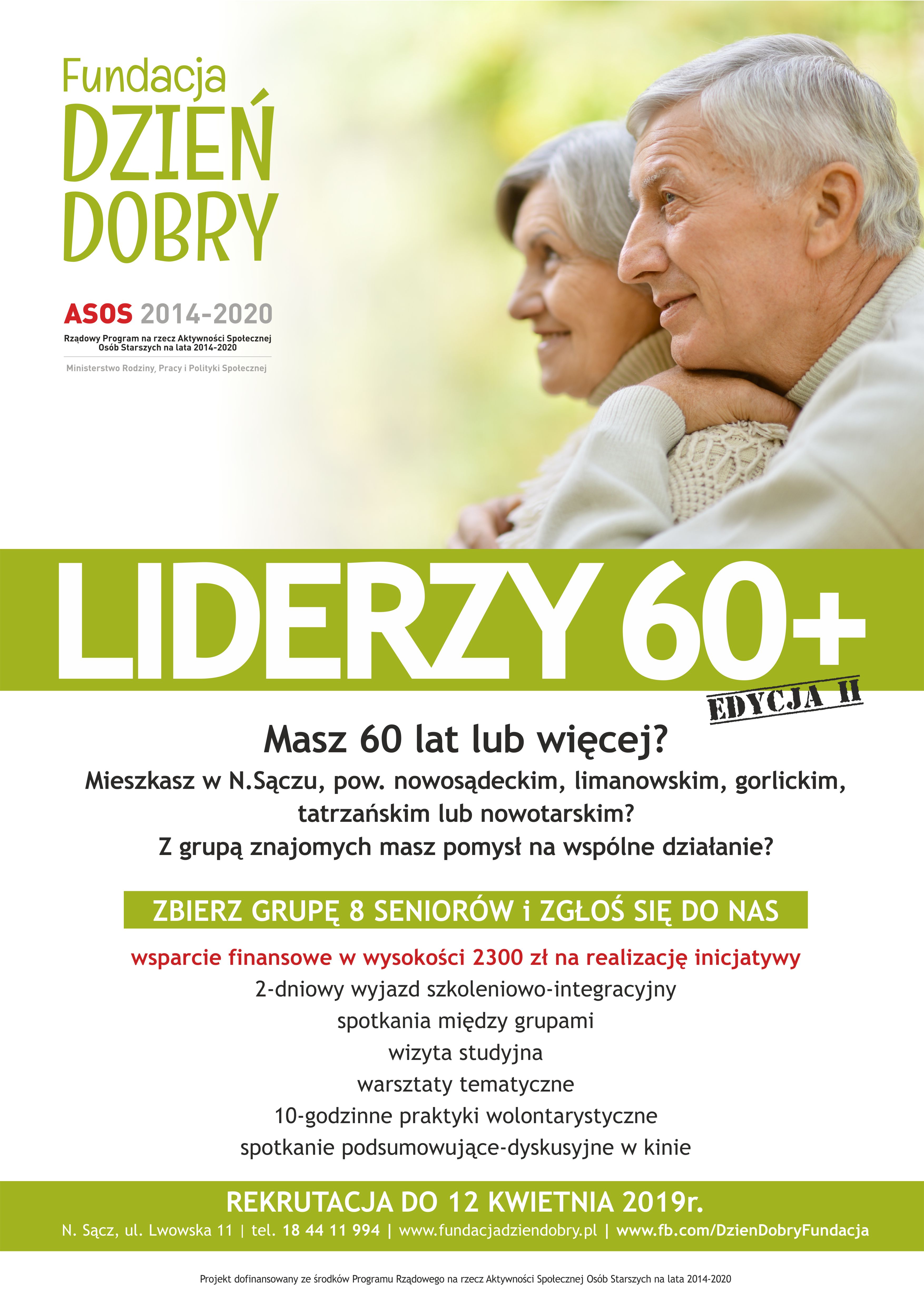 Zapraszamy seniorów do udziału w projekcie "Liderzy 60+ edycja 2" współfinansowanego z Rządowego Programu Na Rzecz Aktywności Społecznej Osób Starszych na lata 2014-2020.