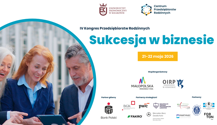 Województwo Małopolskie już po raz trzeci jest współorganizatorem Kongresu Przedsiębiorstw Rodzinnych pt. „Sukcesja w biznesie”. W tym roku wydarzenie odbędzie się w dniach 21-22 maja w Krakowie. Głównym organizatorem Kongresu jest Centrum Przedsiębiorstw Rodzinnych Uniwersytetu Ekonomicznego w Krakowie. Partnerami wydarzenia są, obok Województwa Małopolskiego, Małopolski Związek Pracodawców Lewiatan, Okręgowa Izba Radców Prawnych w Krakowie oraz firma PwC.