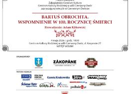 Zaproszenie na obchody 100. rocznicy śmierci Bartusia Obrochty