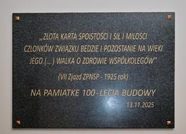 13 listopada w Sali Teatralnej na Ciągłówce w Zakopanem odbyły się uroczystości z okazji setnej rocznicy powstania gmachu byłego Sanatorium Nauczycielskiego w Zakopanem. Budynek, wzniesiony w 1925 roku dzięki składkom nauczycieli z całego kraju, był pierwszym w Polsce sanatorium sfinansowanym wyłącznie ze środków pracowniczych. Jego otwarcie miało ogólnopolski wymiar i zgromadziło najwyższe władze państwowe.