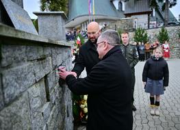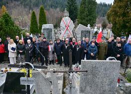 Ostatnim etapem było uroczyste wmurowanie ziemi z Sobiboru pod Krzyżem - Miejscu Pamięci Narodowej z udziałem między innymi Burmistrza Łukasza Filipowicza, kustosza Sanktuarium Narodowego Matki Boskiej Fatimskiej w Zakopanem, ks. dr Mariana Muchy oraz radnych powiatowych Wiesława Lenarta i Piotra Bąka, który to wygłosił przemowę, przybliżającą i przypominającą nam ważny kontekst historyczny polskiej walki o niepodległość. Wydarzenie zamknęło złożenie pod Krzyżem wieńców przez zebrane delegacje.