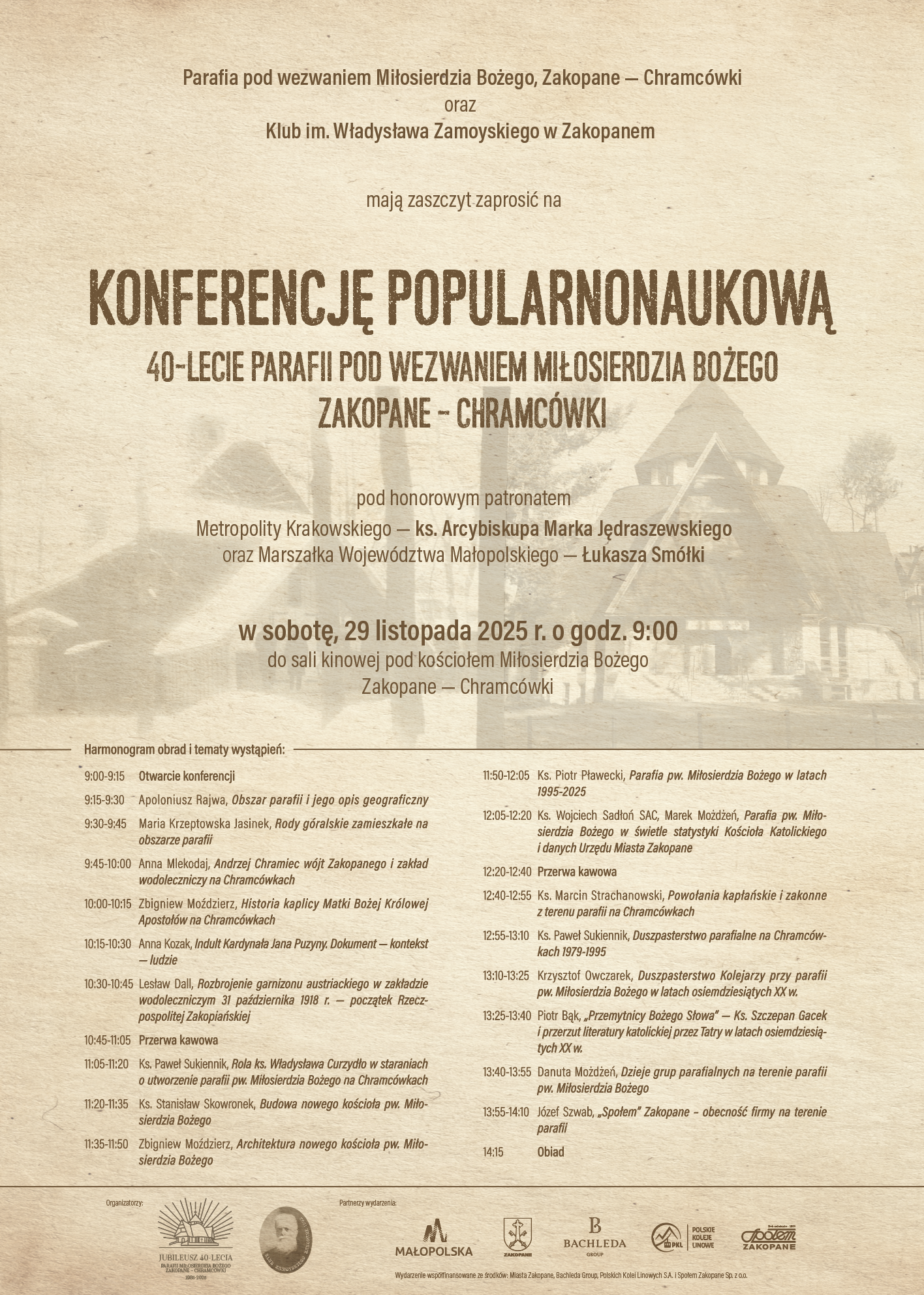 Patronat honorowy nad konferencją objęli Metropolita Krakowski ks. Arcybiskup Marek Jędraszewski i Marszałek Województwa Małopolskiego Łukasz Smółka, a partnerem wydarzenia jest Miasto Zakopane.