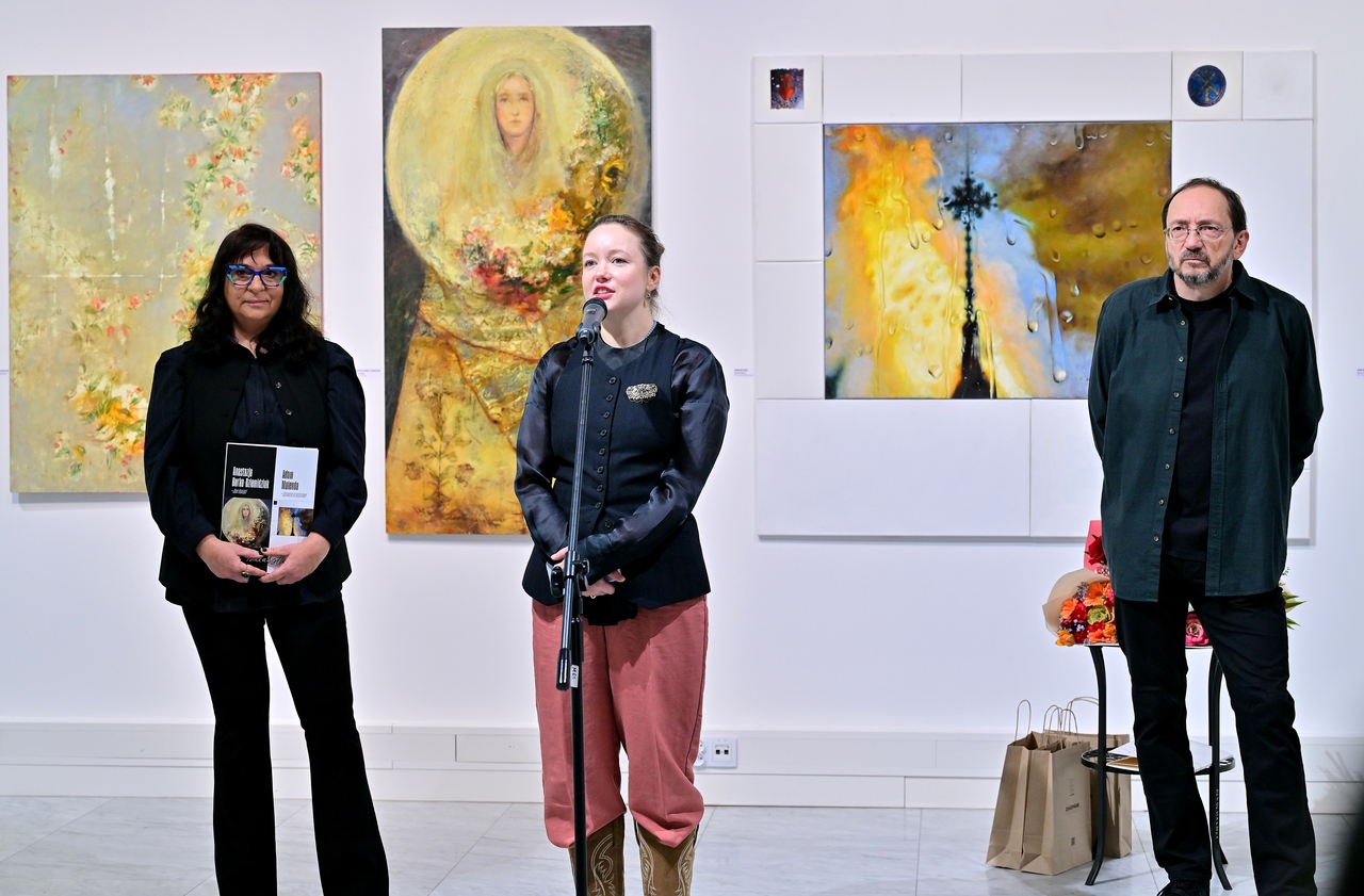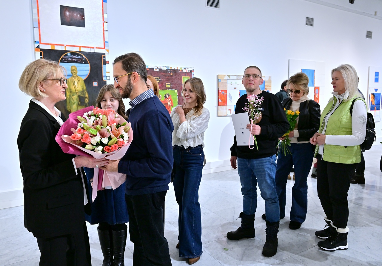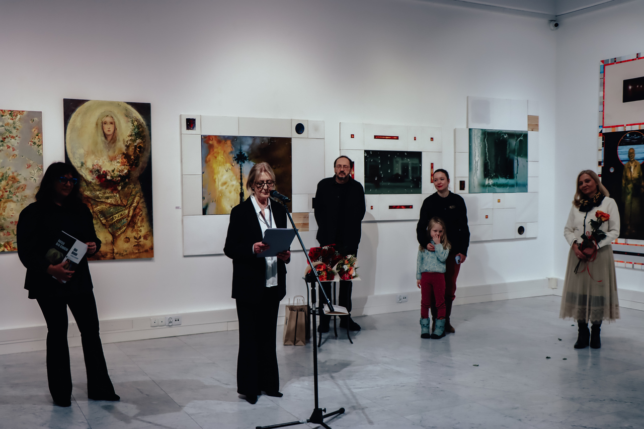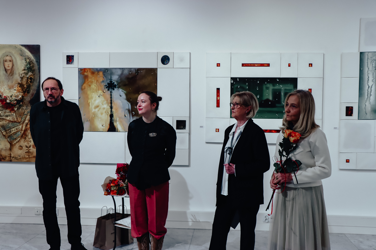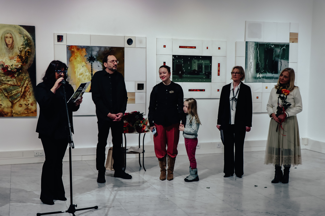 Wszystkich przybyłych gości przywitała dyrektorka galerii Lidia Rosińska-Podleśny, podkreślając, że te dwie równolegle trwające ekspozycje są nie tylko spotkaniem ze sztuką trojga artystów, lecz także okazją do zanurzenia się w trzy odmienne, a zarazem przenikające się opowieści o świecie – budowane poprzez barwę, formę, tkankę obrazu i materię tkaniny.