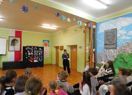 Dzieci i ich rodziców powitał Pan dyrektor Piotr Kopeć i nauczyciele, którzy przedstawili bogatą ofertę szkoły. Następnie uczniowie klas 3 zaprezentowali krótki występ artystyczny, na tle kolorowych, bajkowych dekoracji.