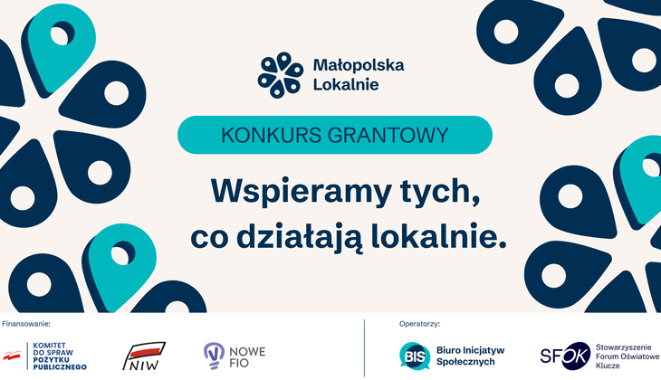Fundacja Biuro Inicjatyw Społecznych wraz ze Stowarzyszeniem Forum Oświatowe Klucze zapraszają mieszkańców Małopolski, grupy nieformalne oraz niewielkie, lokalne organizacje pozarządowe do udziału w kolejnej edycji konkursu grantowego Małopolska Lokalnie.