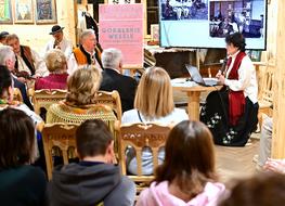 Prelekcję poświęconą Andrzejowi Krzeptowskiemu- Bohacowi wygłosiła prof. dr hab. Anna Mlekodaj, profesor nadzwyczajna Instytutu Nauk Humanistyczno-Społecznych i Turystyki Akademii Nauk Stosowanych w Nowym Targu, wybitna badaczka literatury i kultury Podtatrza. W swoim wystąpieniu ukazała bohatera wieczoru nie tylko jako artystę i instruktora, lecz także jako depozytariusza tradycji, który z niezwykłą konsekwencją dba o jej autentyczność i międzypokoleniowy przekaz.