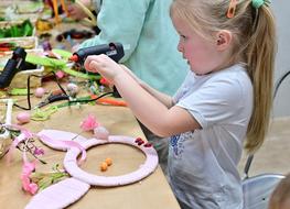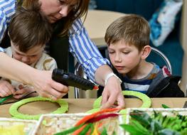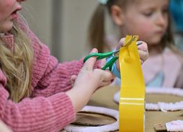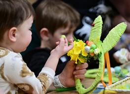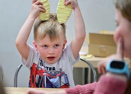 Podczas warsztatów najmłodsi uczestnicy z ogromnym zaangażowaniem tworzyli kolorowe dekoracje wielkanocne. Nie brakowało kreatywnych pomysłów, barwnych materiałów i uśmiechów. Każde dziecko mogło puścić wodze wyobraźni i przygotować własne, wyjątkowe ozdoby, które z dumą zabrało do domu.