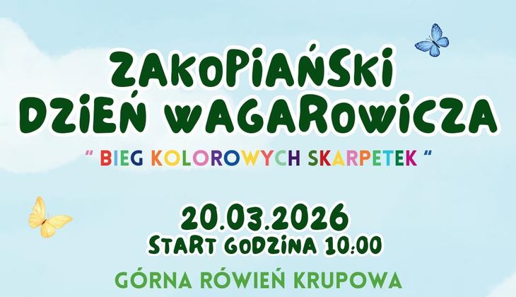 Zapraszamy do wzięcia udziału w Zakopiańskim Dniu Wagarowicza – Dniu Kolorowych Skarpetek połączonym z z zabawą w przebierańców i kolorowym korowodem 20 marca 2026 /piątek/ o godz. 10.00 na Górnej Równi Krupowej.