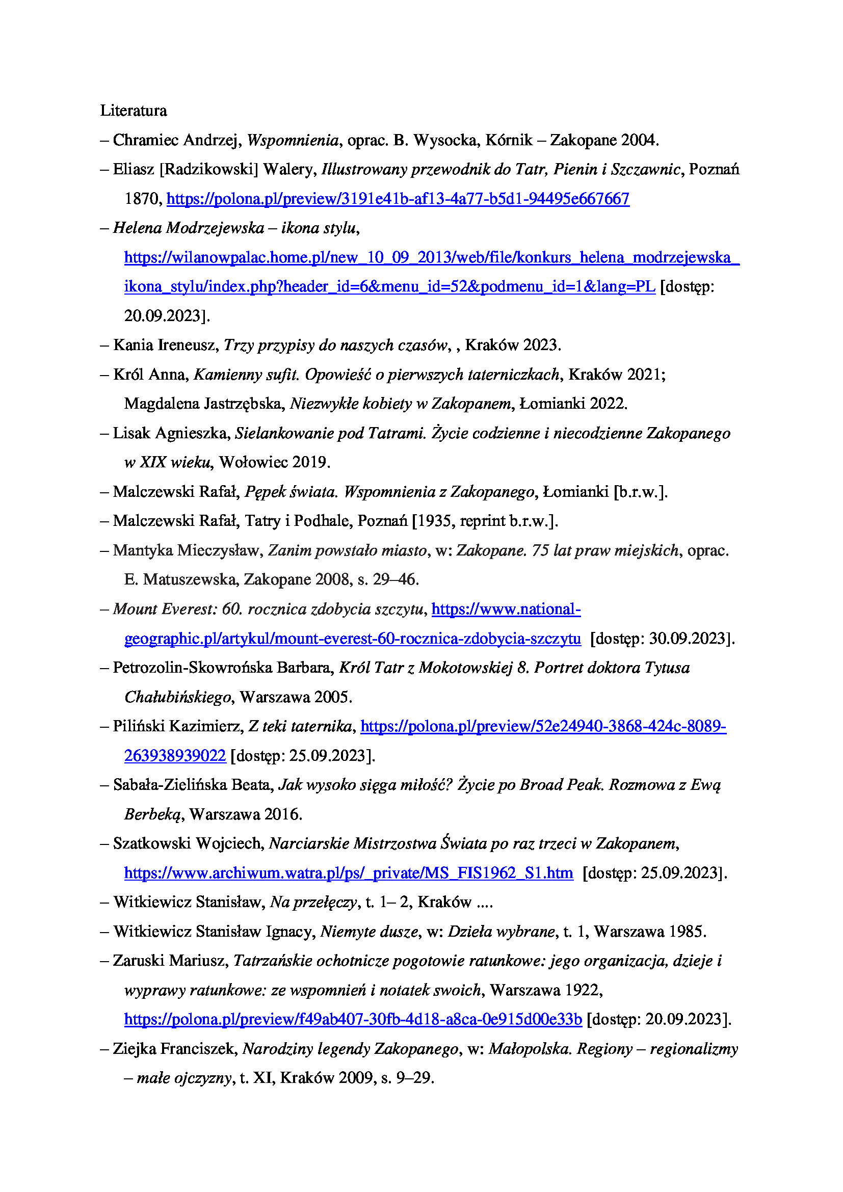 Zdjęcia, które zostały użyte do stworzenia wystawy pochodzą z Archiwum Muzeum Tatrzańskiego, Ośrodka Dokumentacji Tatrzańskiej TPN, Narodowego Archiwum Cyfrowego, archiwów prywatnych rodziny Berbeków, Agaty i Rafała Miklerów, Tomasza Tlałki i Stanisława Tatara.