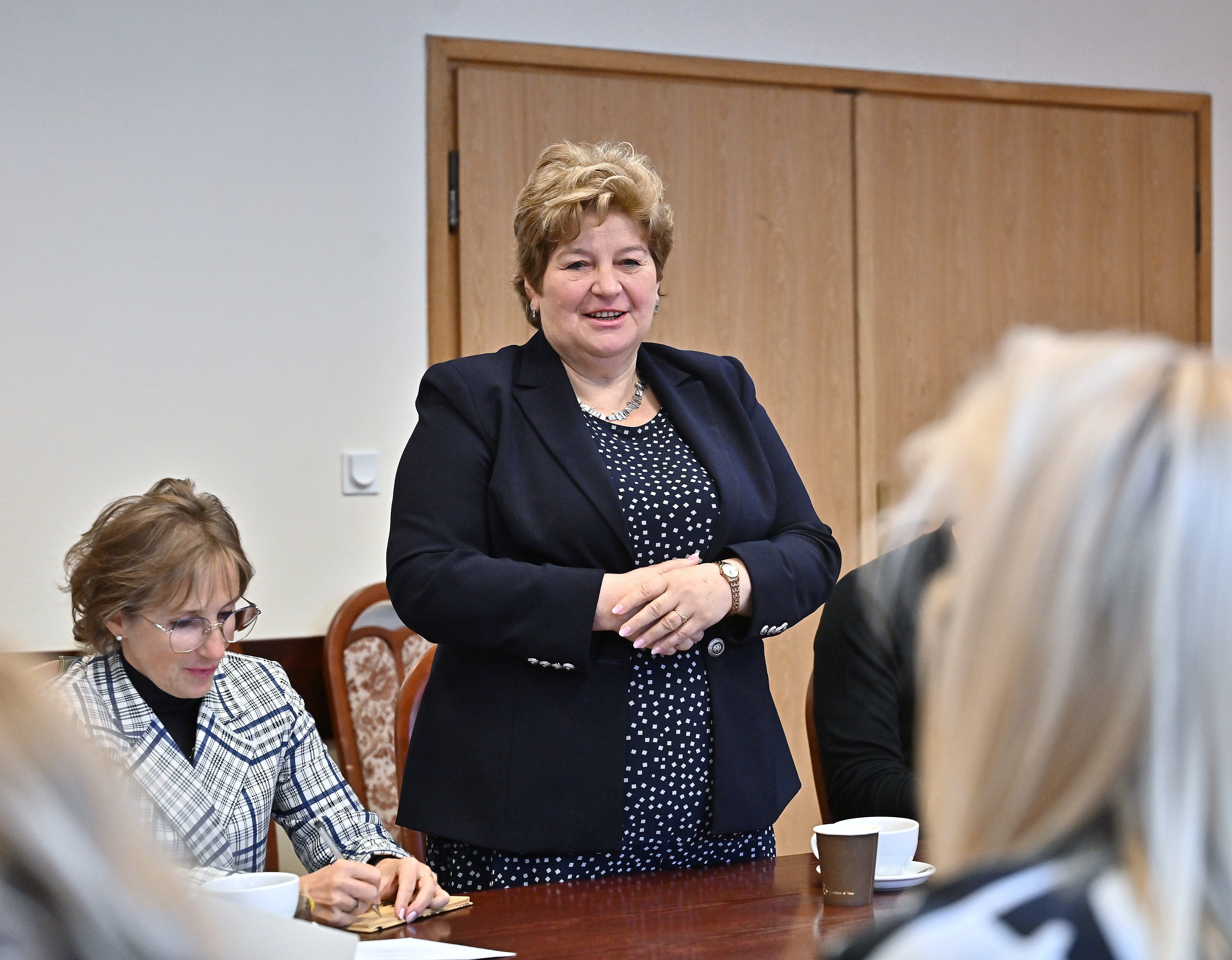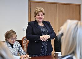 Podczas spotkania przedstawiono nową Naczelnik Wydziału Oświaty i Spraw Społecznych - Ewę Zydroń, która objęła stanowisko od 1 października 2025 r.