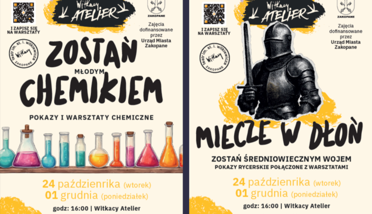 Młodych mieszkańców Zakopanego zapraszamy do Witkacy Atelier na pokazy i warsztaty chemiczne oraz pokazy rycerskie połączone z warsztatami.