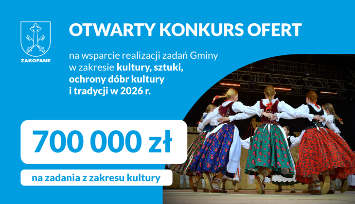 Burmistrz Miasta Zakopane ogłasza Otwarty Konkurs Ofert na wsparcie realizacji zadań Gminy w zakresie kultury, sztuki, ochrony dóbr kultury i tradycji w roku 2026.