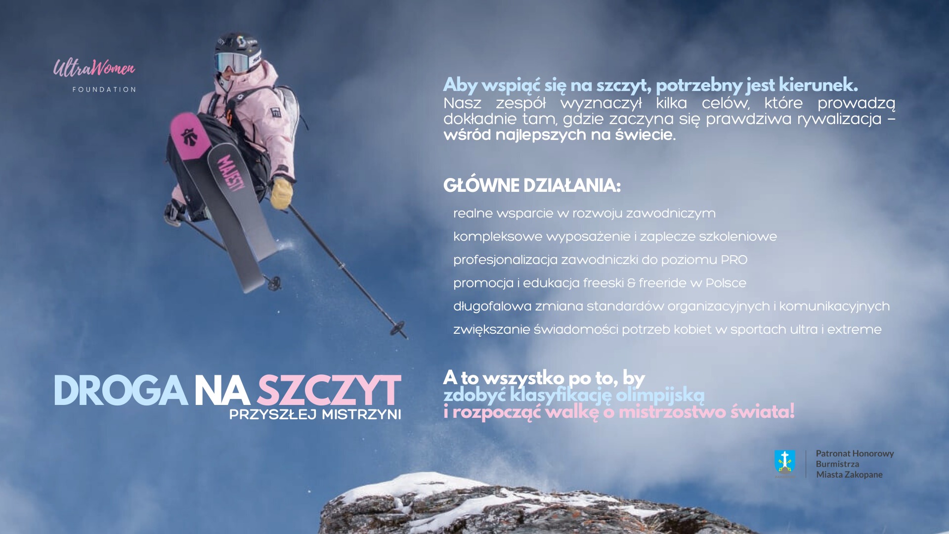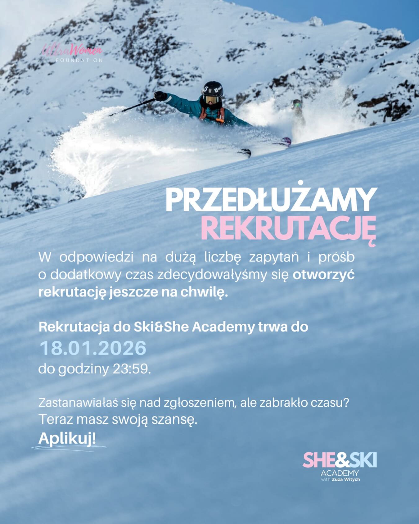 Fundacja UltraWomen wspólnie z Zuzą Witych - jedną z najlepszych freeriderek na świecie - uruchomiły She&Ski Academy, pierwszy w Europie program stypendialny dla narciarek, które chcą rozwijać karierę w freeride i freeski na poziomie profesjonalnym. Od 1 grudnia trwa rekrutacja dla zawodniczek gotowych trenować według najwyższych standardów.