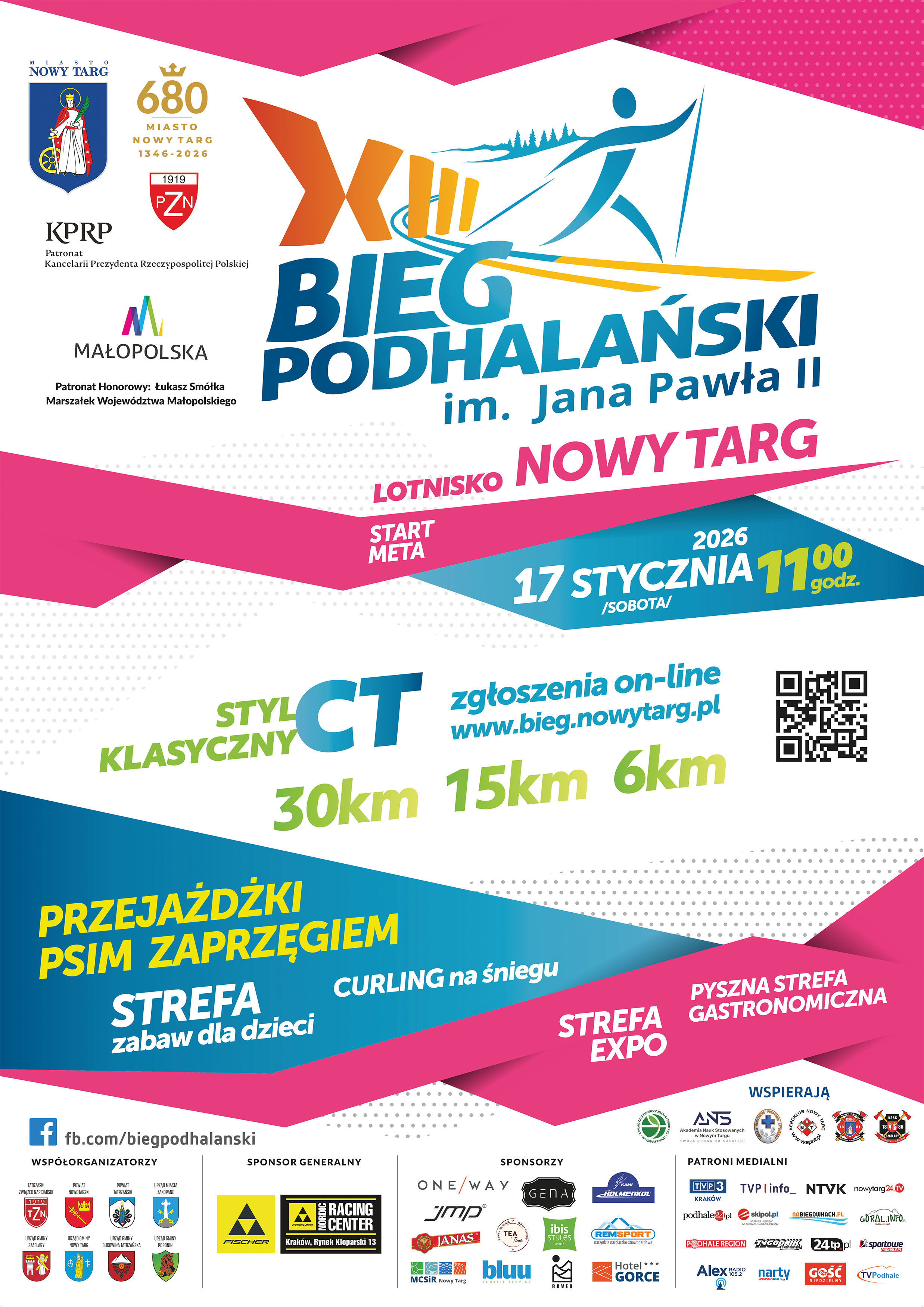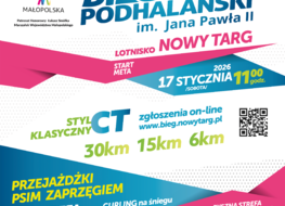 Już w najbliższą sobotę, 17 stycznia 2026 r., Nowy Targ stanie się stolicą polskich biegów narciarskich. O godzinie 11.00 wystartuje XIII Bieg Podhalański im. Jana Pawła II. Jest to wyjątkowe wydarzenie na sportowej mapie Polski. Kilkuset biegaczek i biegaczy narciarskich, zarówno amatorów, jak i profesjonalistów, zmierzy się na malowniczych oraz świetnie przygotowanych trasach, prowadzących wokół Rezerwatu Przyrody Bór na Czerwonem. Start i meta znajdują się na lotnisku w Nowym Targu. Uczestnicy rywalizują na trzech trasach o długości 30 km, 15 km i 6 km, które są dostosowane dla osób zaawansowanych, jak również początkujących i dzieci.