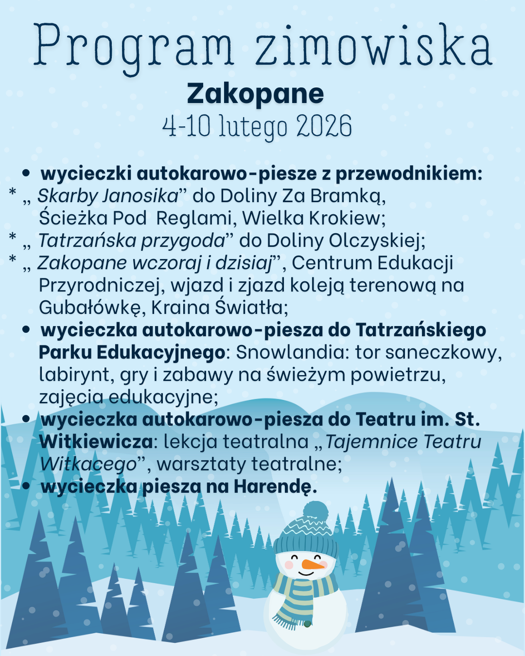 Zimowisko, które łączy, integruje, edukuje - prawdziwa zimowa przygoda Liczba miejsc ograniczona. Decyduje kolejność zgłoszeń!