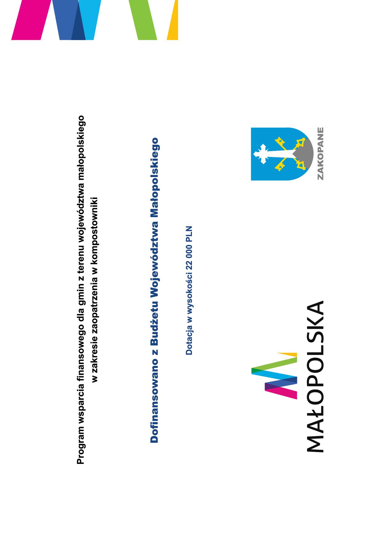 Zapraszamy mieszkańców Zakopanego do zapoznania się z Regulaminem programu pn. „Zakup i przekazanie na potrzeby własne mieszkańcom Gminy Miasto Zakopane przydomowych kompostowników” oraz składania wniosków. Projekt realizowany jest przy wsparciu finansowym województwa małopolskiego w kwocie 22 000 zł.