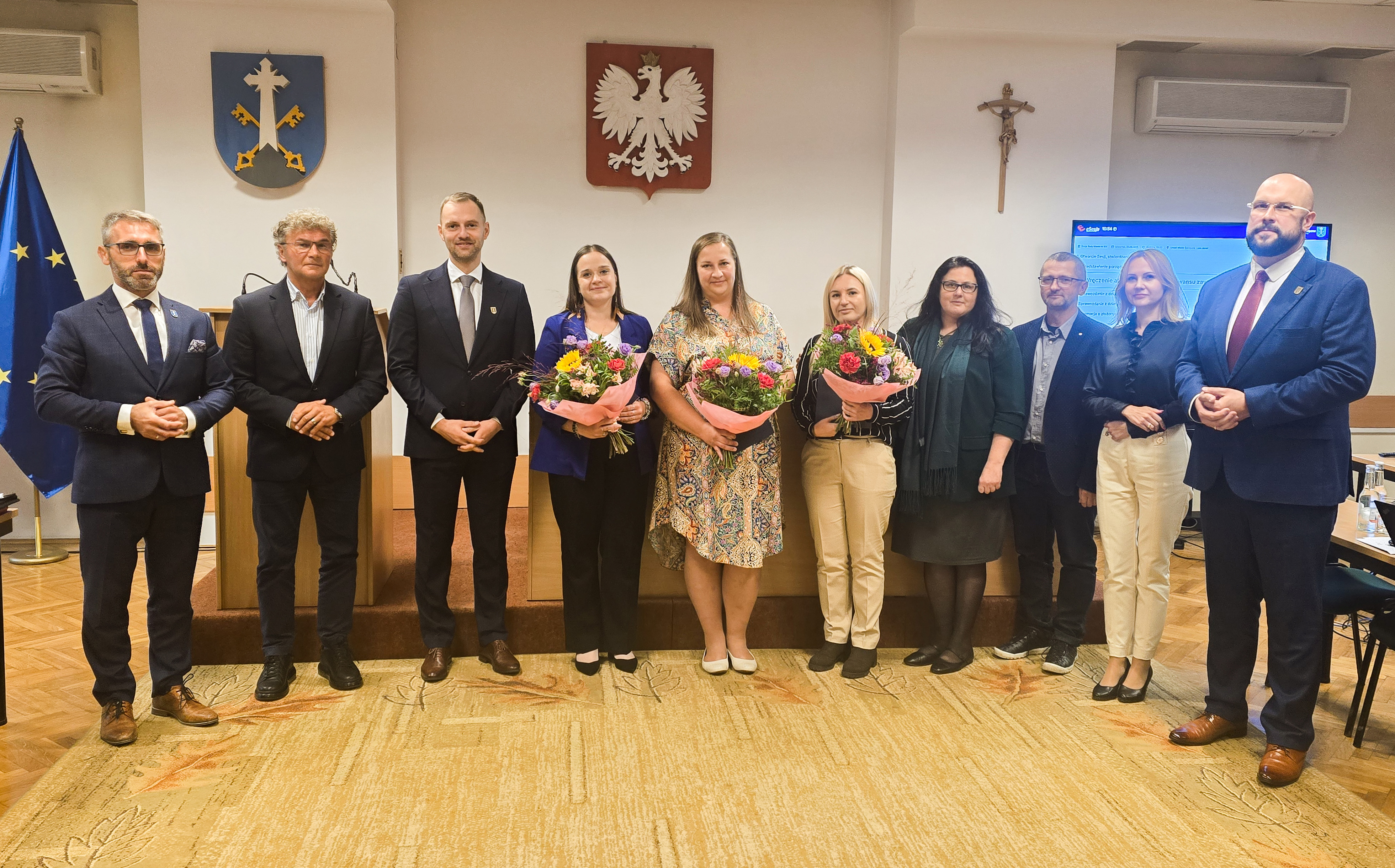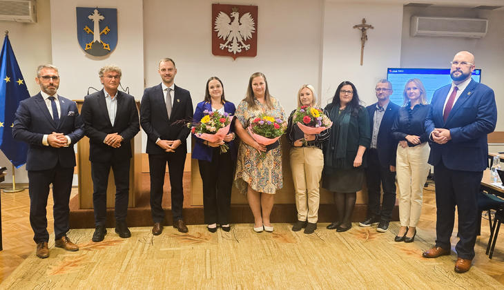 Po złożeniu ślubowania, które odczytał Przewodniczący Komisji Oświaty Pan Marek Donatowicz, Panie otrzymały Akty Nadania Stopnia Awansu Zawodowego Nauczyciela Mianowanego oraz gratulacje od Burmistrza Łukasza Filipowicza, Zastępców Iwony Grzebyk-Dulak i Bartłomieja Bryjaka, a także Przewodniczącego Rady Grzegorza Jóźkiewicza.