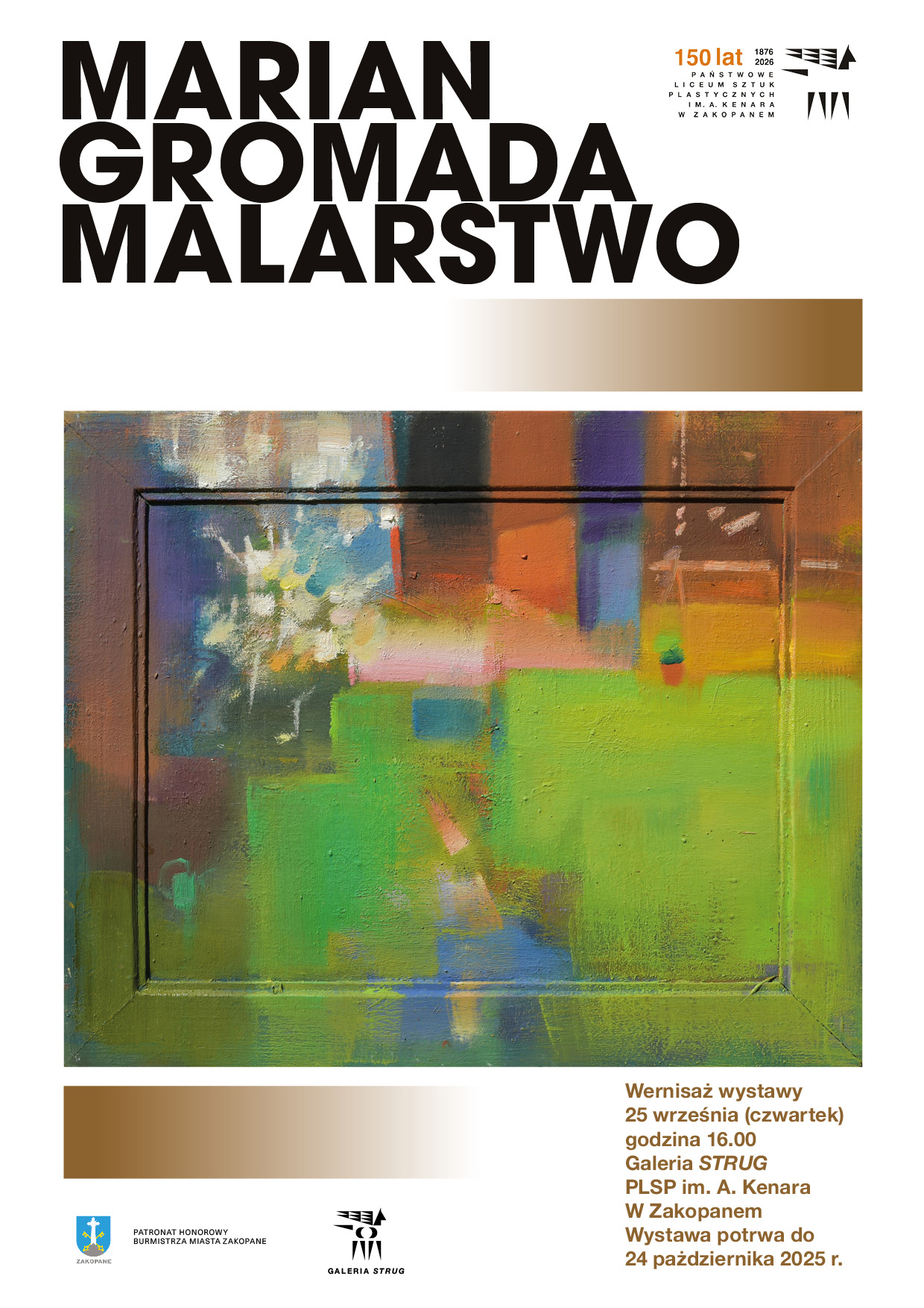 W ostatni czwartek, 25 września, w szkolnej Galerii "STRUG" odbył się wernisaż wystawy malarstwa Mariana Gromady. Wydarzenie jest częścią cyklu obchodów Jubileuszu 150-lecia PLSP im. A. Kenara w Zakopanem.