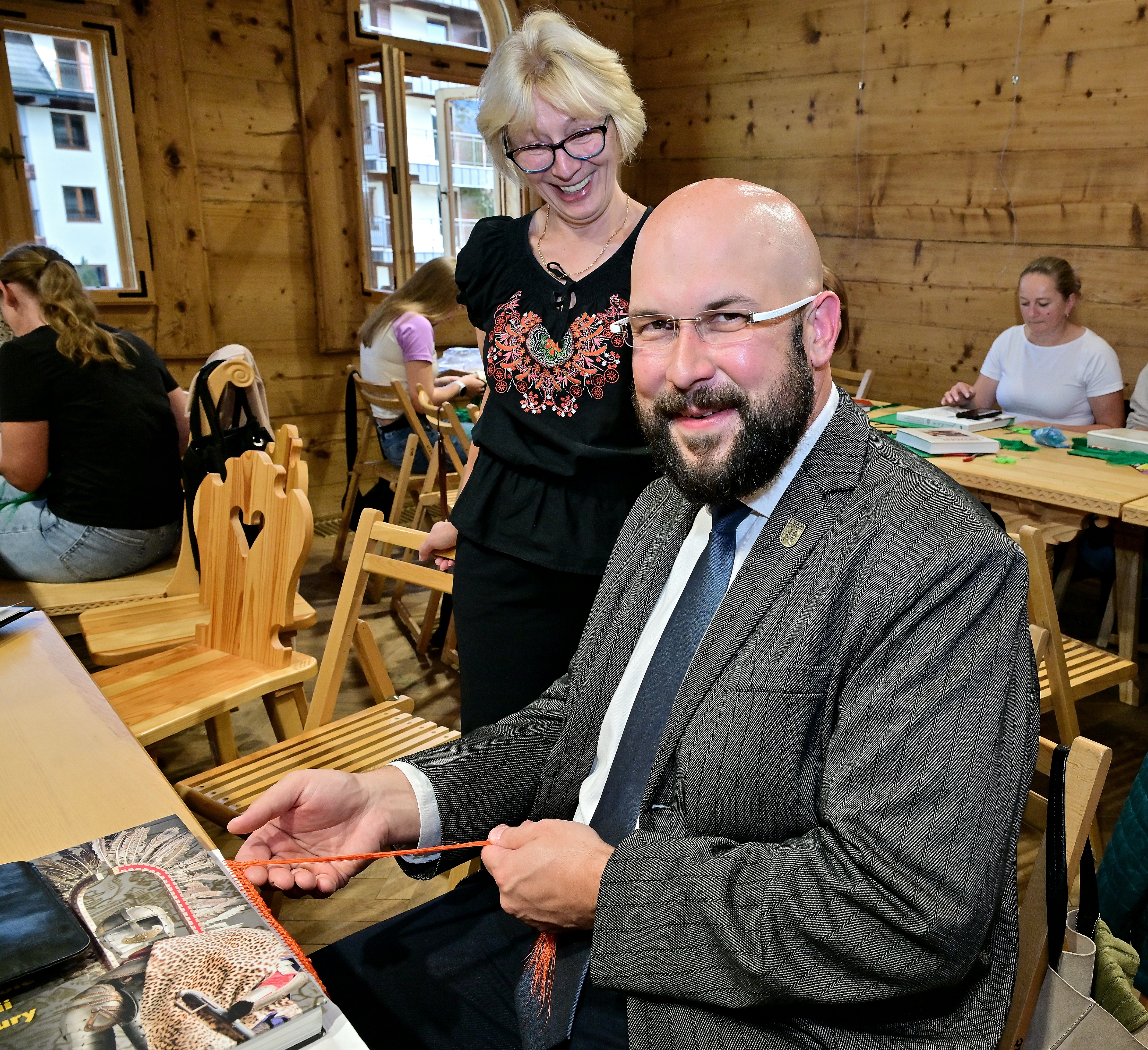 Razem z Burmistrzem Łukaszem Filipowiczem odwiedzili Centrum Kultury Rodzimej w Willi Czerwony Dwór, gdzie odkrywali piękno zakopiańskiej architektury i unikalnej kultury. Tam wzięli także udział w warsztatach prowadzonych przez panią Danutę Klimecką, podczas których poznali sztukę przyprawiania strzępków