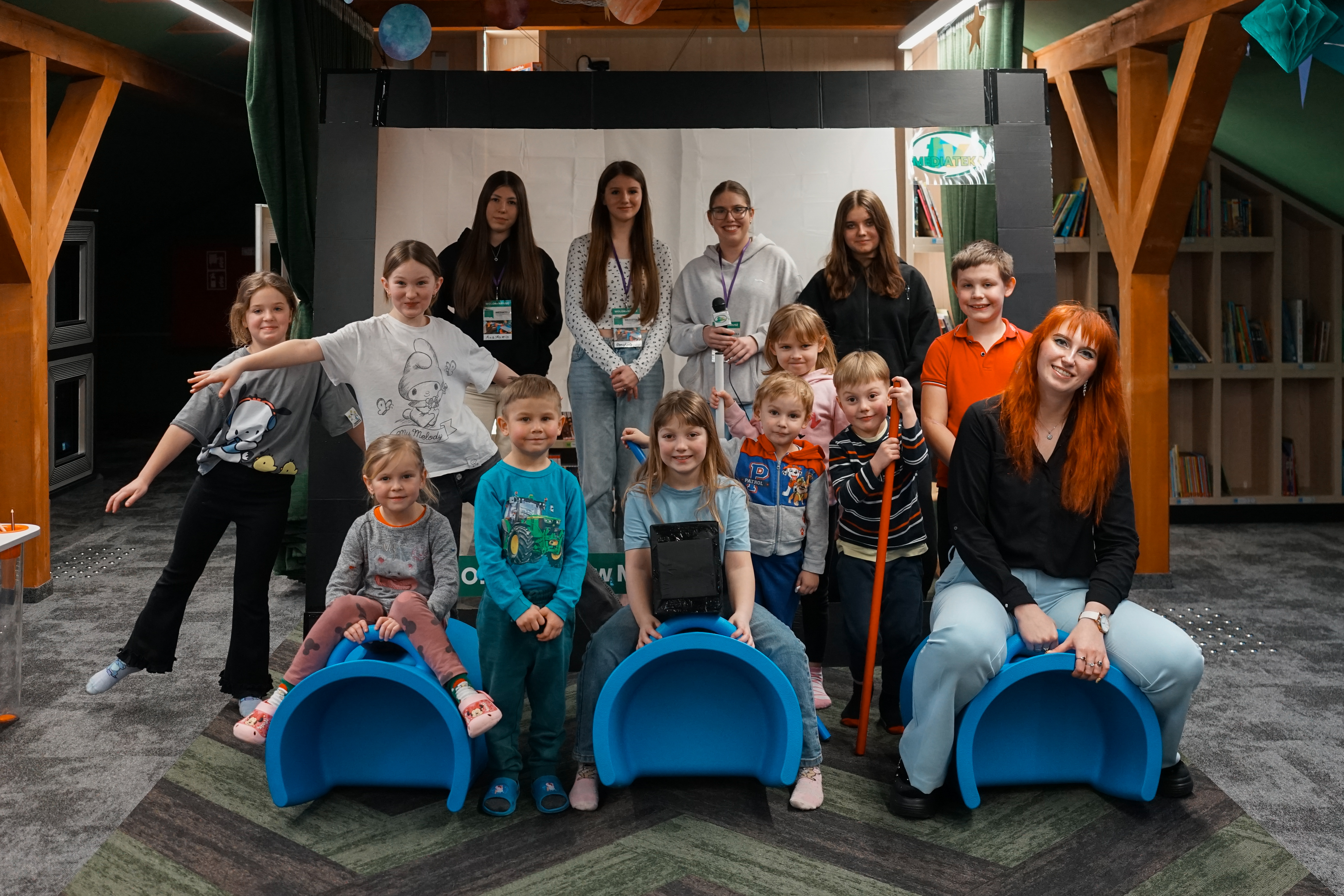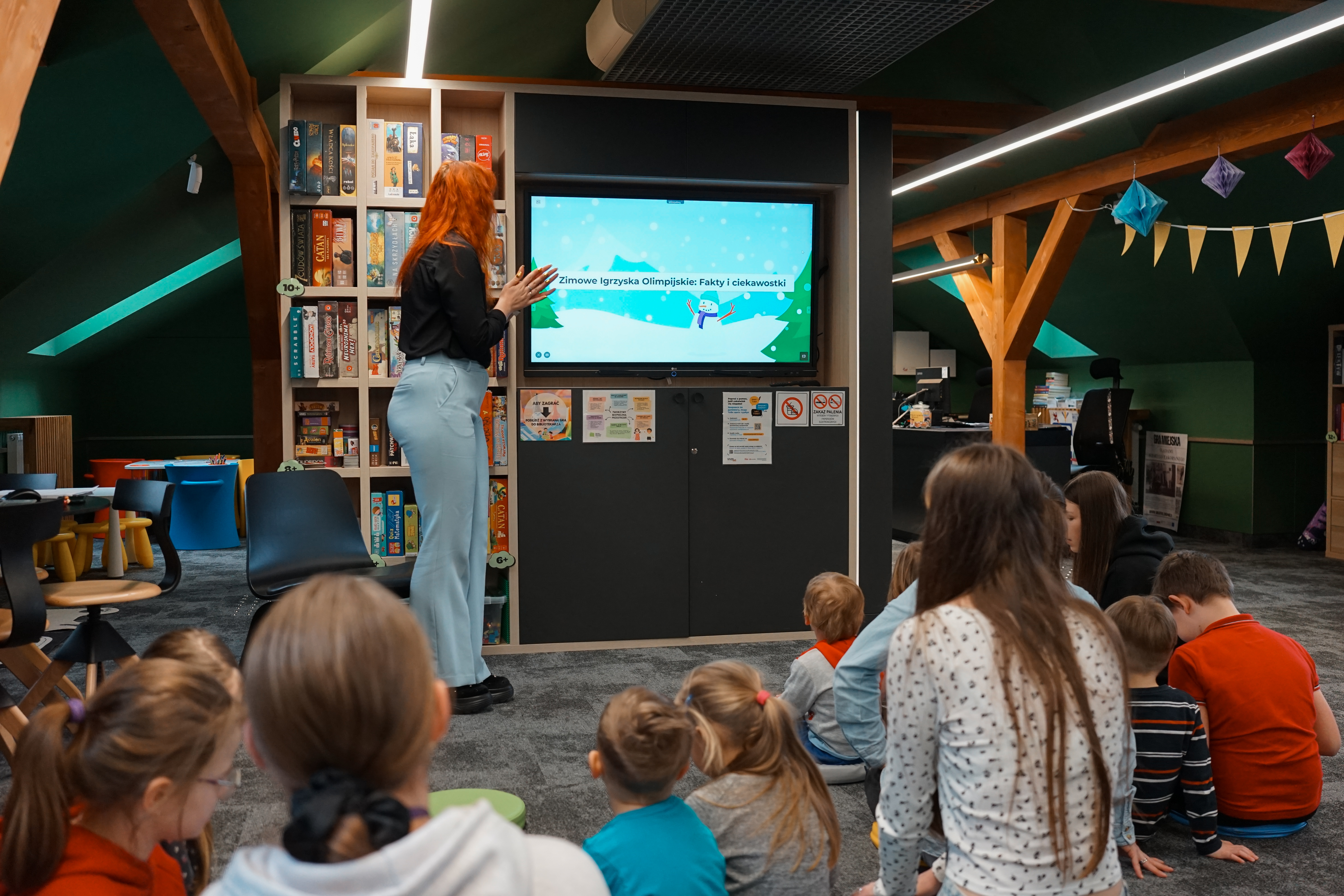 Ferie obfitowały w wydarzenia organizowane w Mediatece oraz w Oddziale dla Dzieci i Młodzieży. Najmłodsi uczestniczyli w spektaklu „Zajęcza Chatka”, w warsztatach literacko-plastycznych „Książkowy Karnawał w Bibliotece” oraz w spotkaniach: „Olimpijskie ferie - pierwszy krok do podium” i „Olimpiada na wizji - sport, emocje, kamera”. Program łączył elementy edukacji, zabawy i pracy twórczej, a dzieci chętnie angażowały się w proponowane aktywności. Uzupełnieniem zajęć była możliwość korzystania z gier planszowych, klocków LEGO oraz przestrzeni czytelniczej.