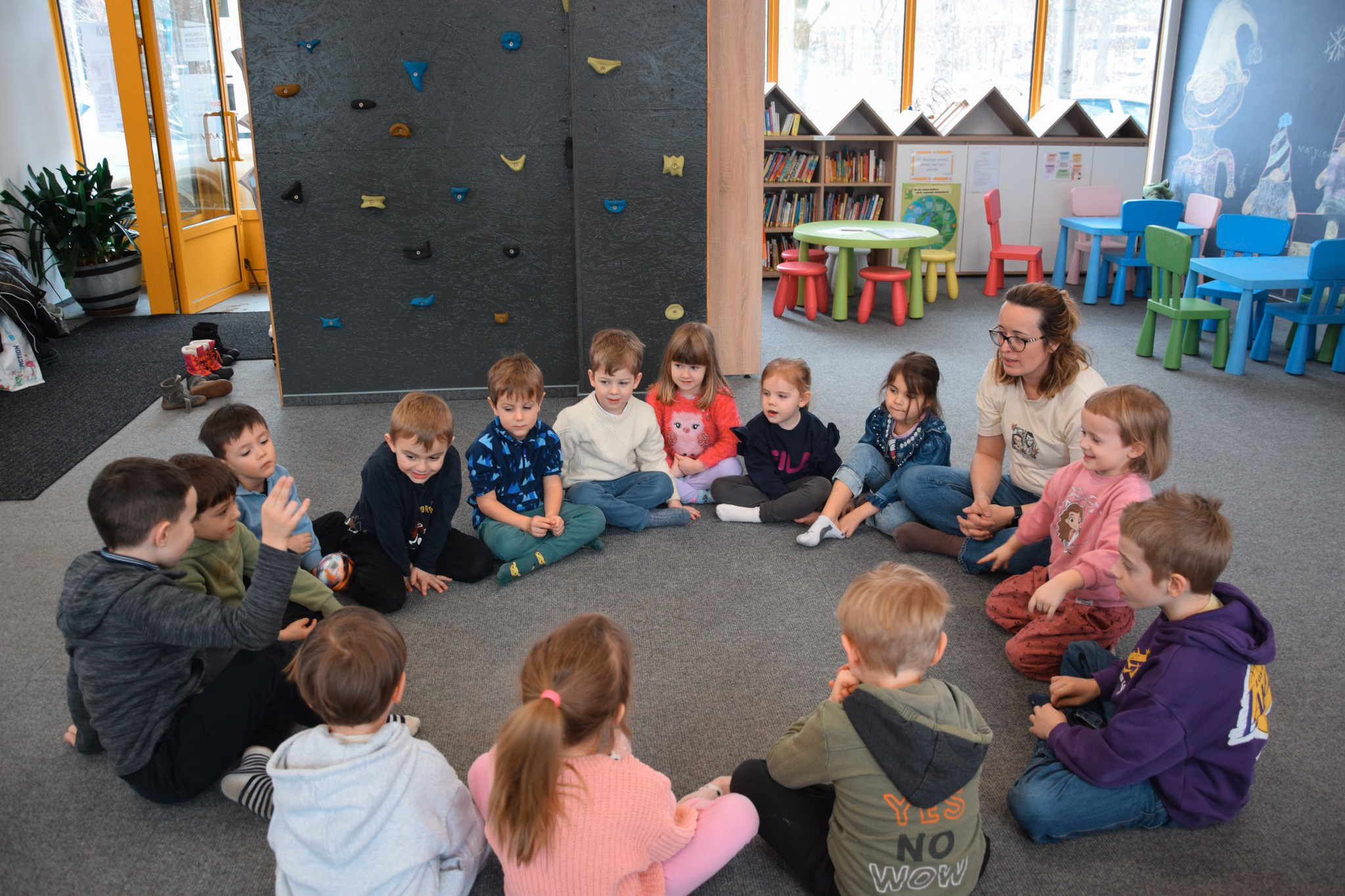 W czasie ferii odbywały się również lekcje biblioteczne dla uczniów szkół podstawowych i przedszkolaków, podczas których dzieci brały udział w zajęciach opartych na książkach.