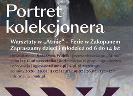 - 10:30-12:00 Zabawki z włóczki inspirowane bohaterami bajek Kornela Makuszyńskiego – warsztaty edukacyjno-plastyczne dla dzieci w wieku 6-10 lat, Muzeum Kornela Makuszyńskiego, filia Muzeum Tatrzańskiego, ul. Tetmajera 15, Koszt: 20 zł/os. (10 zł dla mieszkańców gmin: Biały Dunajec, Bukowina Tatrzańska, Czarny Dunajec, Kościelisko, Nowy Targ, Miasto Nowy Targ, Miasto Zakopane, Poronin i Szaflary), Zapisy: rezerwacja@muzeumtatrzanskie.pl tel. 533 925 111