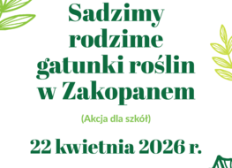 Tatrzański Park Narodowy i Miasto Zakopane - Wydział Ochrony Środowiska zapraszają uczniów zakopiańskich szkół 22 kwietnia 2026 do wzięcia udziału w akcji sadzenia rodzimych gatunków drzew.