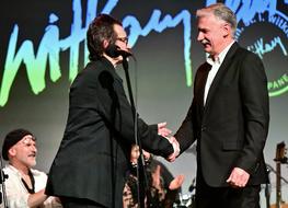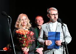 Grzegorz Jóźkiewicz na ręce dyrektora Andrzeja St. Dziuka przekazał gratulacje z okazji kolejnego jubileuszu oraz podziękował Aktorom za wytrwałość, pasję i miłość do sztuki, którymi zarażają innych, tworząc od 41. lat jedną z najlepszych scen teatralnych w Polsce.