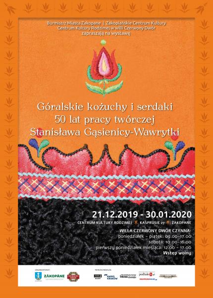 Burmistrz Miasta Zakopane Leszek Dorula, Zakopiańskie Centrum Kultury zapraszają na wernisaż wystawy w Czerwonym Dworze: „50 lat pracy twórczej Stanisława Gąsienicy – Wawrytko. Góralskie kożuchy i serdaki”