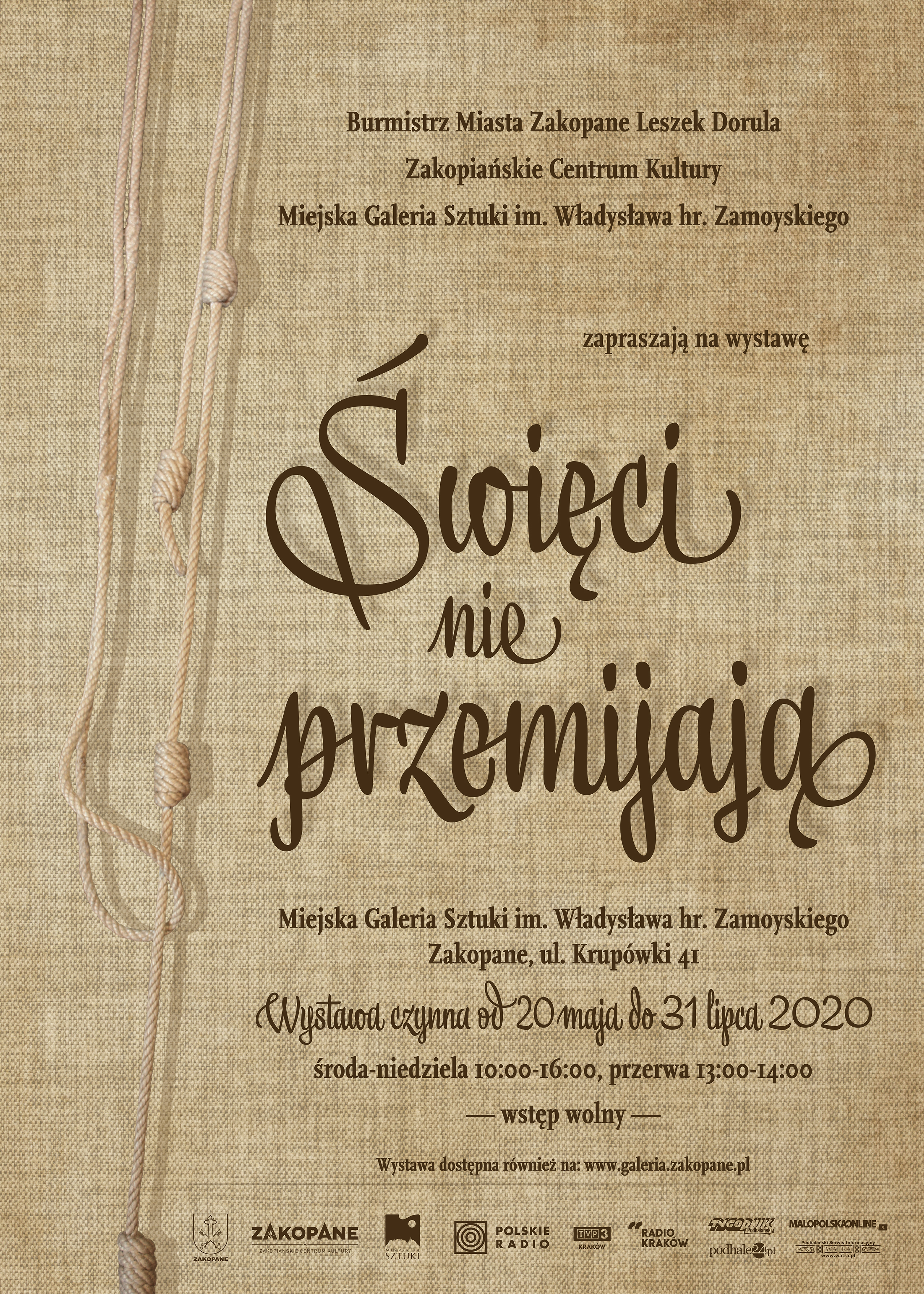 Włączając się w obchody setnej rocznicy urodzin św. Jana Pawła II, od 20 maja 2020 r. Zakopiańskie Centrum Kultury, Miejska Galeria Sztuki im. Wł. hr. Zamoyskiego zapraszają Państwa do Miejskiej Galerii Sztuki na wystawę „Święci nie przemijają”. Ekspozycja będzie prezentacją wybranych polskich świętych i błogosławionych, których na ołtarze (także tutaj pod Tatrami) wyniósł św. Jan Paweł II.