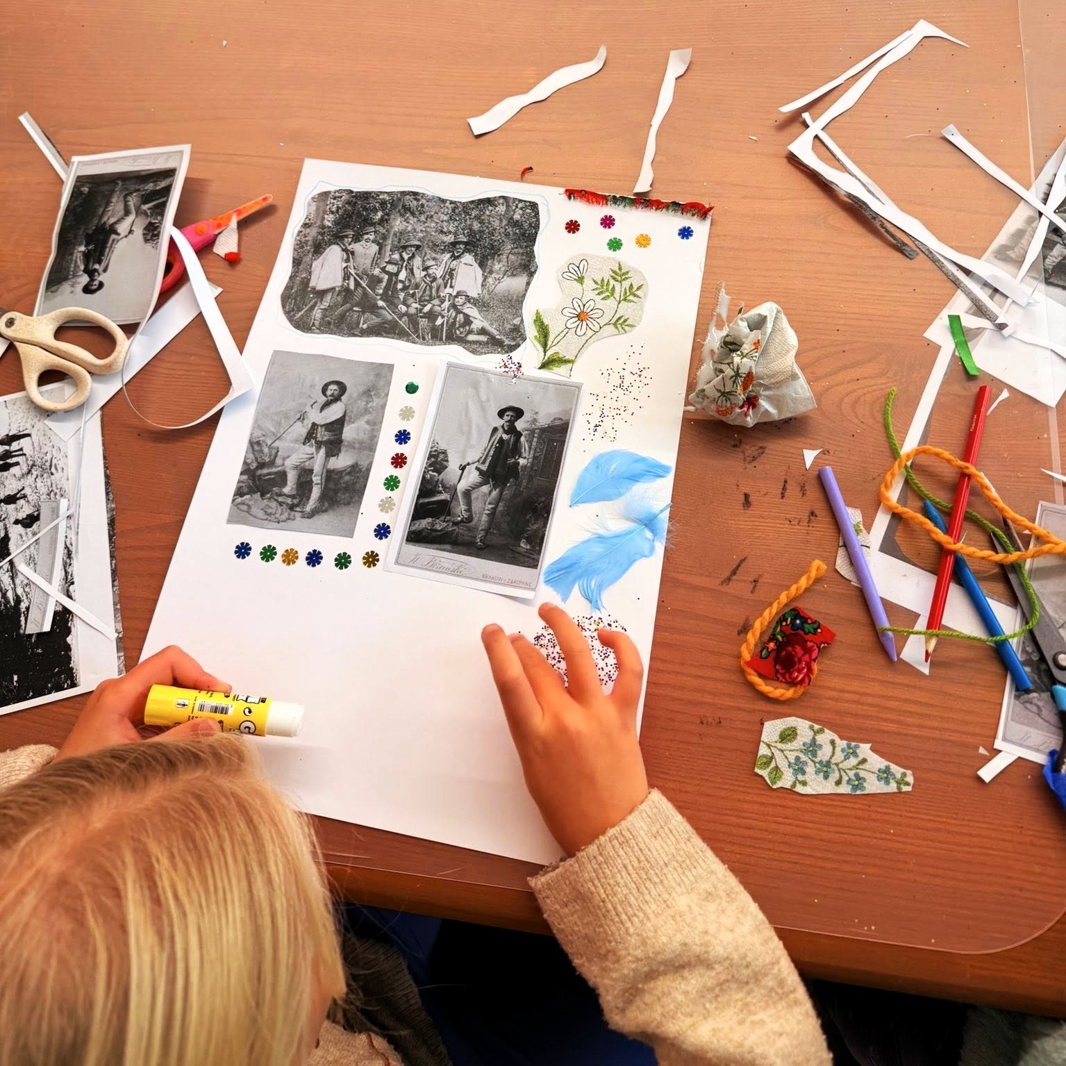 Podczas dwóch dni warsztatowych z kolażu fotograficznego "Pierwsi przewodnicy tatrzańscy" uczniowie zakopiańskich szkół poznawali historię tatrzańskiego przewodnictwa i przekładali ją na język sztuki – tworząc wyjątkowe kolaże inspirowane archiwalnymi zdjęciami, mapami i opowieściami o ludziach gór.