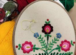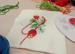 Końcem listopada sala warsztatowa w Czerwonym Dworze zamieniła się w pracownię pełną kolorów i tradycji, a to za sprawą warsztatów z wyszywania na suknie, prowadzonych przez Annę Nędzę-Kubiniec.