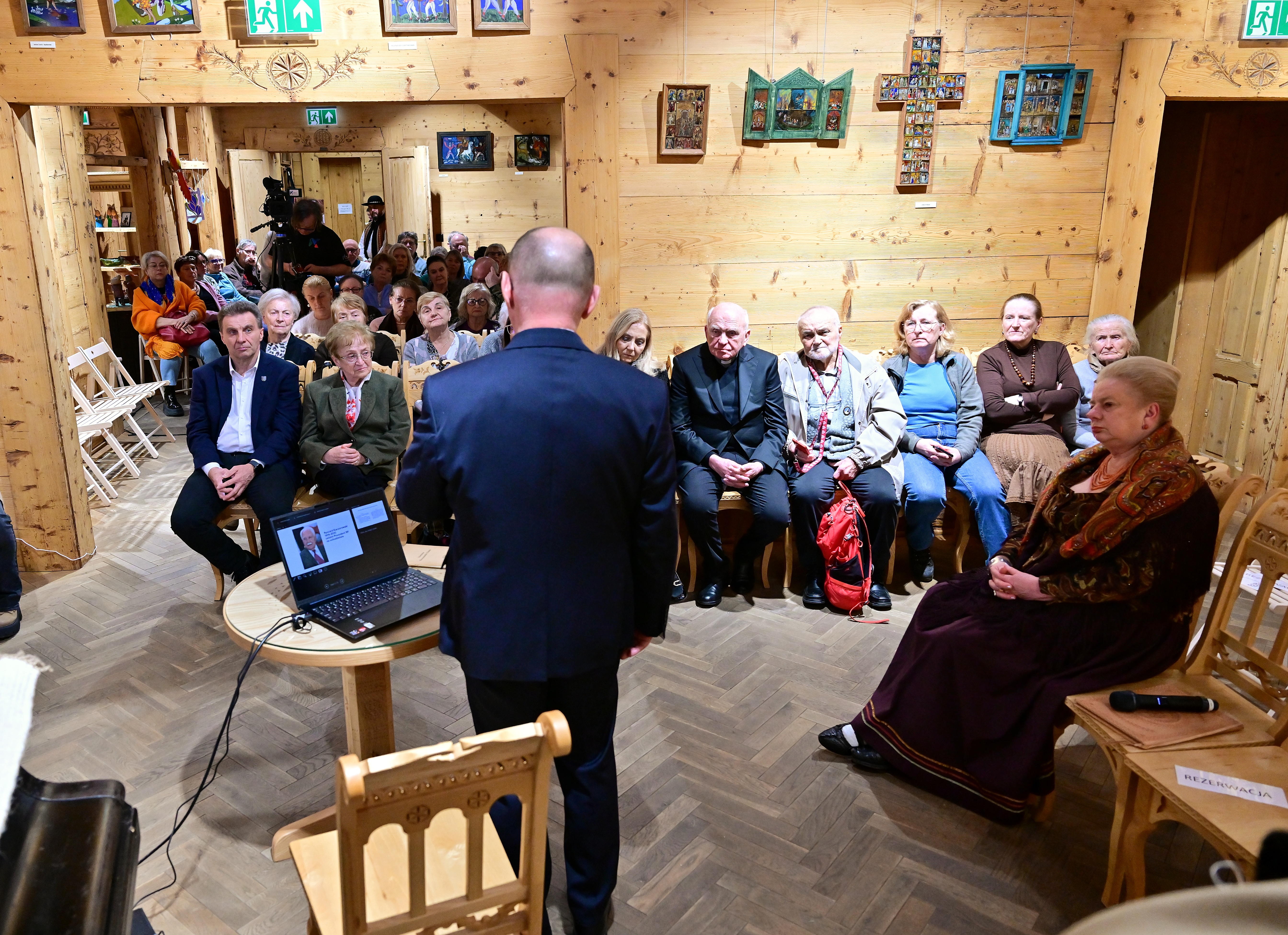 Szczególne miejsce w wykładzie zajęły związki Ryszarda Kaczorowskiego z Zakopanem. Prelegent podkreślił jego życzliwość wobec miasta, obecność podczas ważnych uroczystości oraz serdeczne relacje z mieszkańcami. To właśnie te ciepłe, osobiste kontakty sprawiły, że został uhonorowany tytułem Honorowego Obywatela Zakopanego.