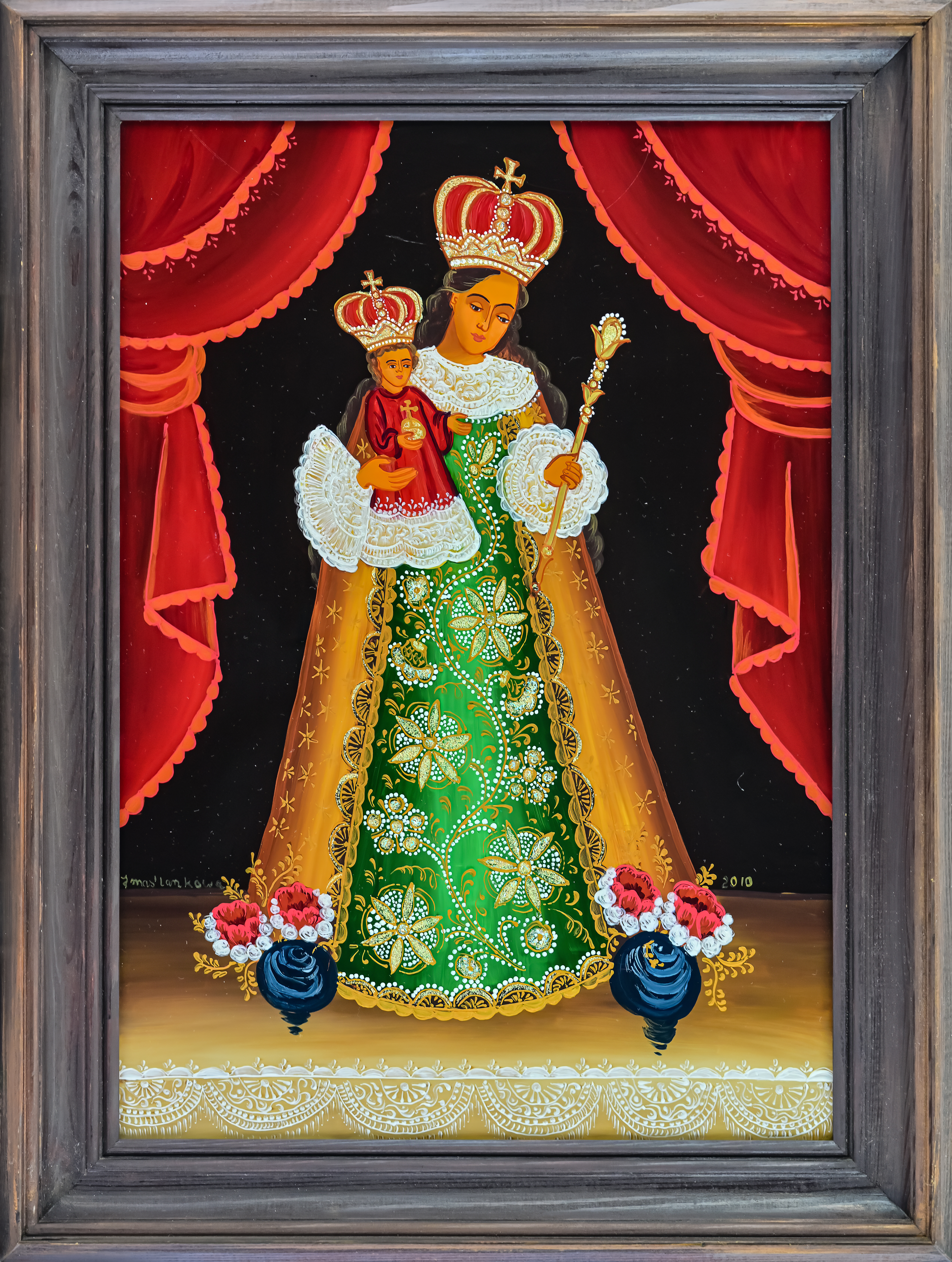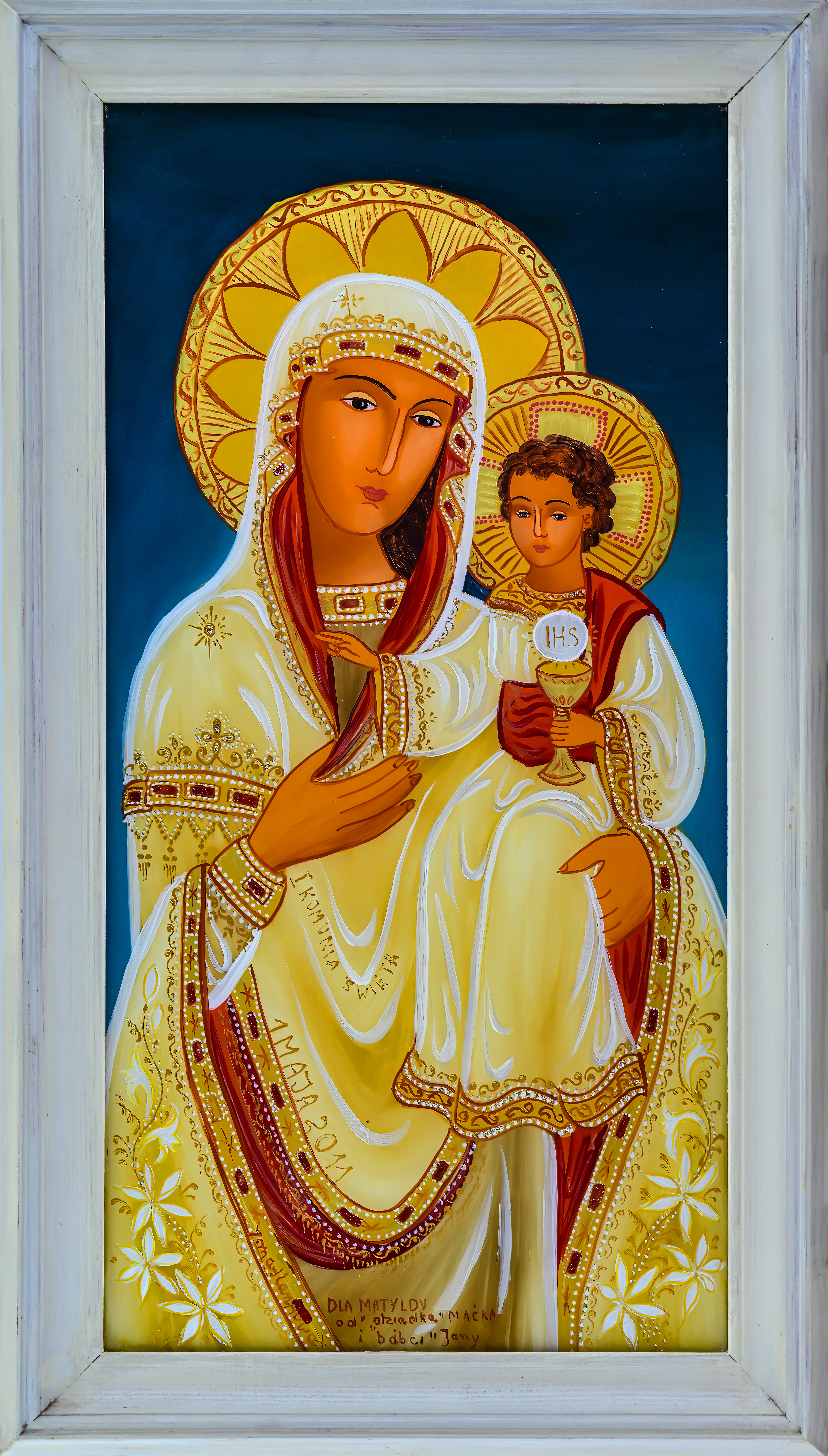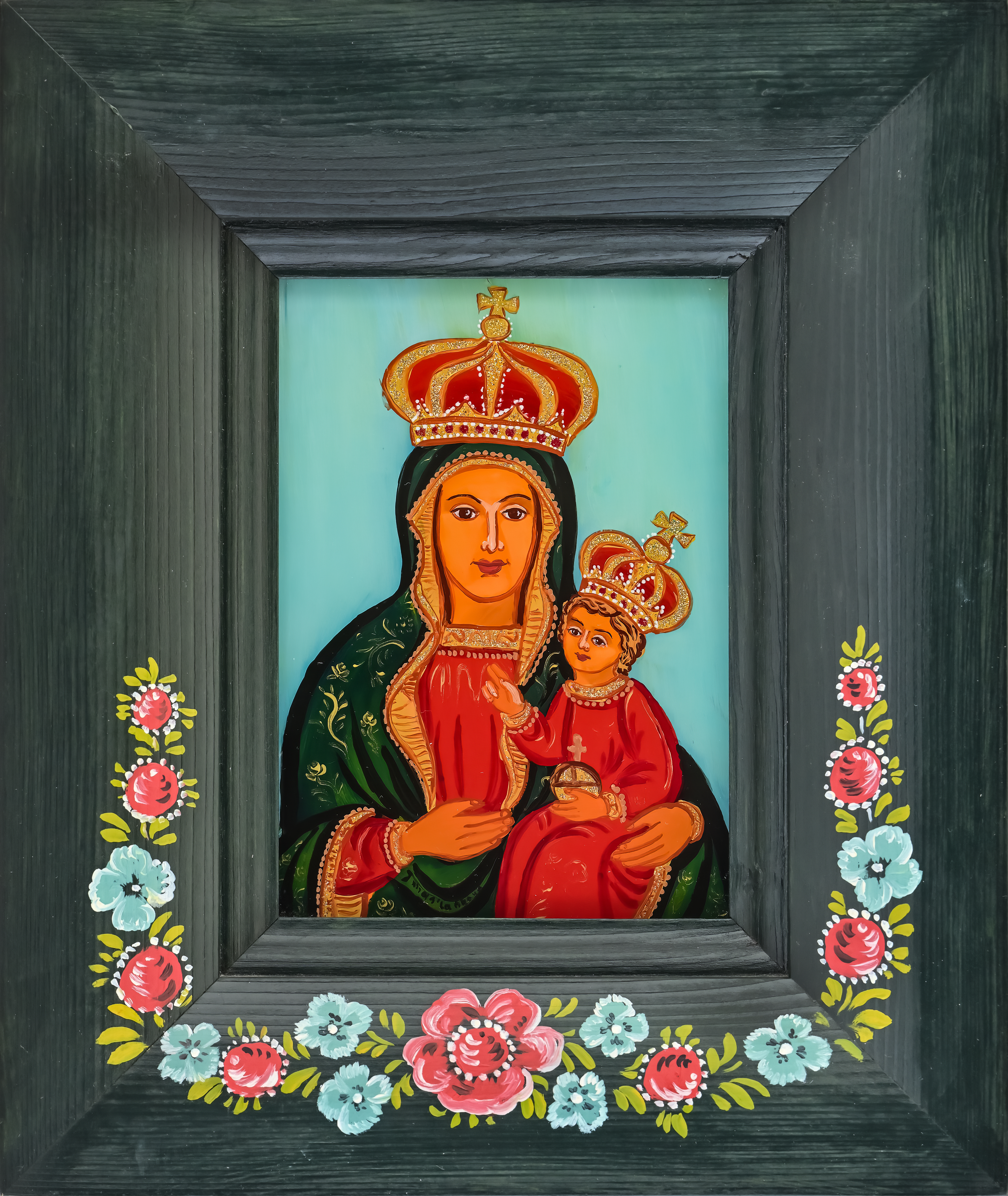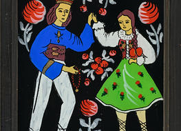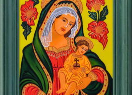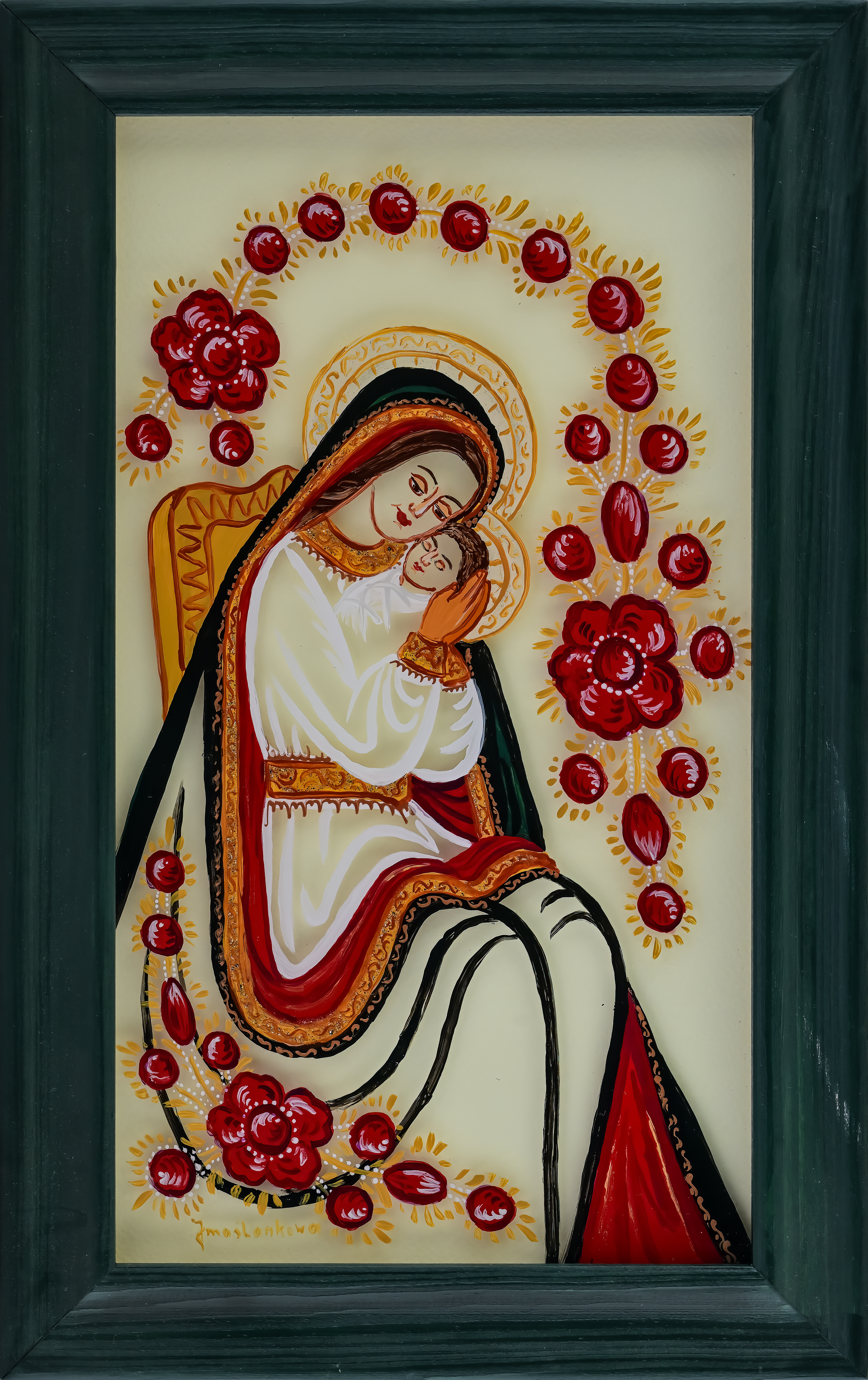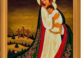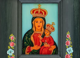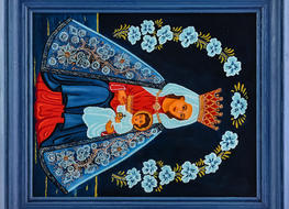 Na początku oczywiście były madonny – zrazu bardzo bliskie kanonom sztuki ludowej, chętne do zadomowienia się na listwie białej izby pośród „szklaków”. Radosne bogactwo kolorów, malarski walor świętego tematu – były w Janiny obrazkach jak przeczucie raju. Jej zdobniczy talent kształcił się i rozwijał w cudne ornamenty.