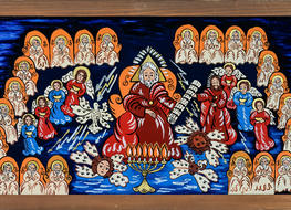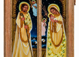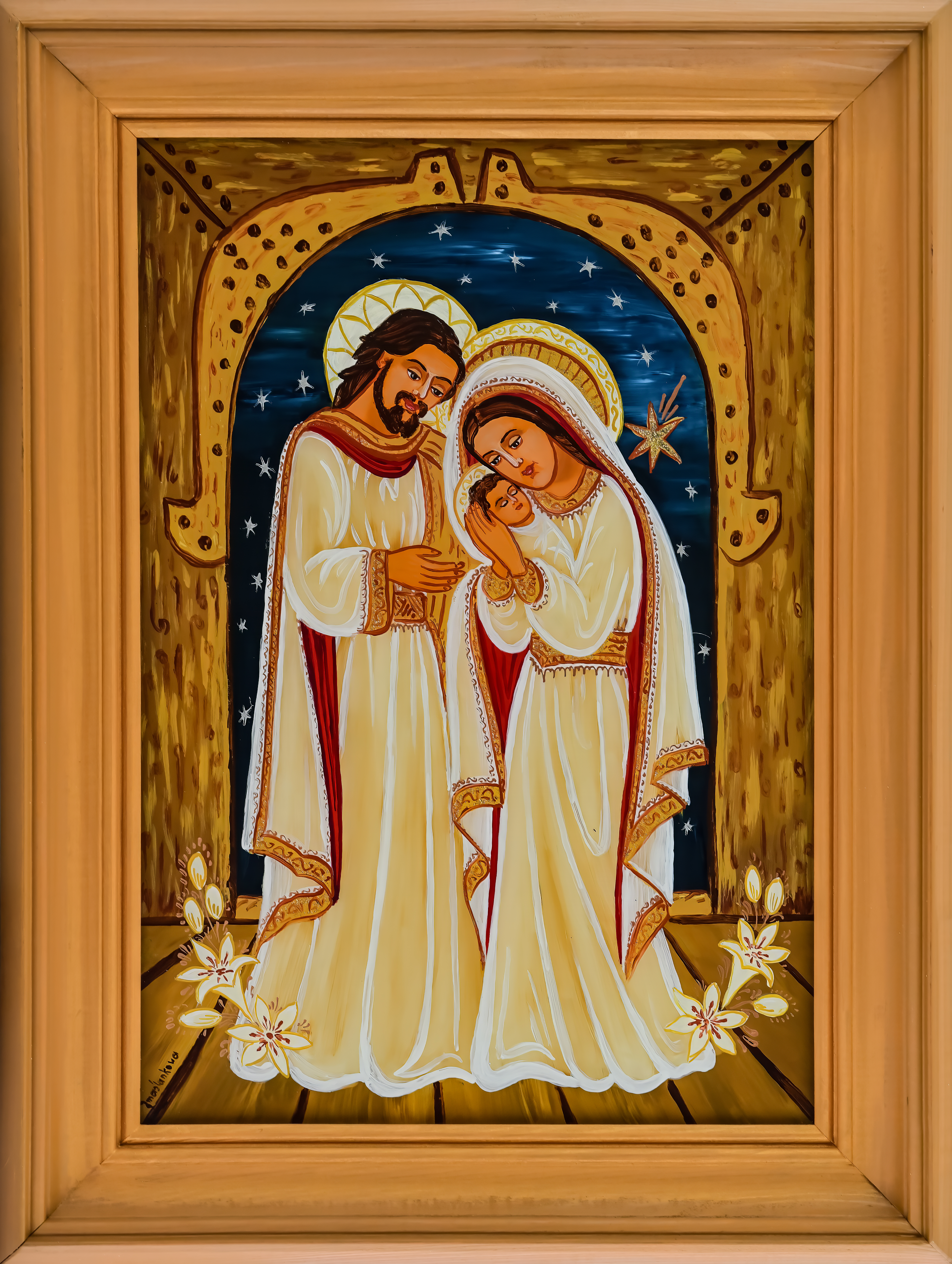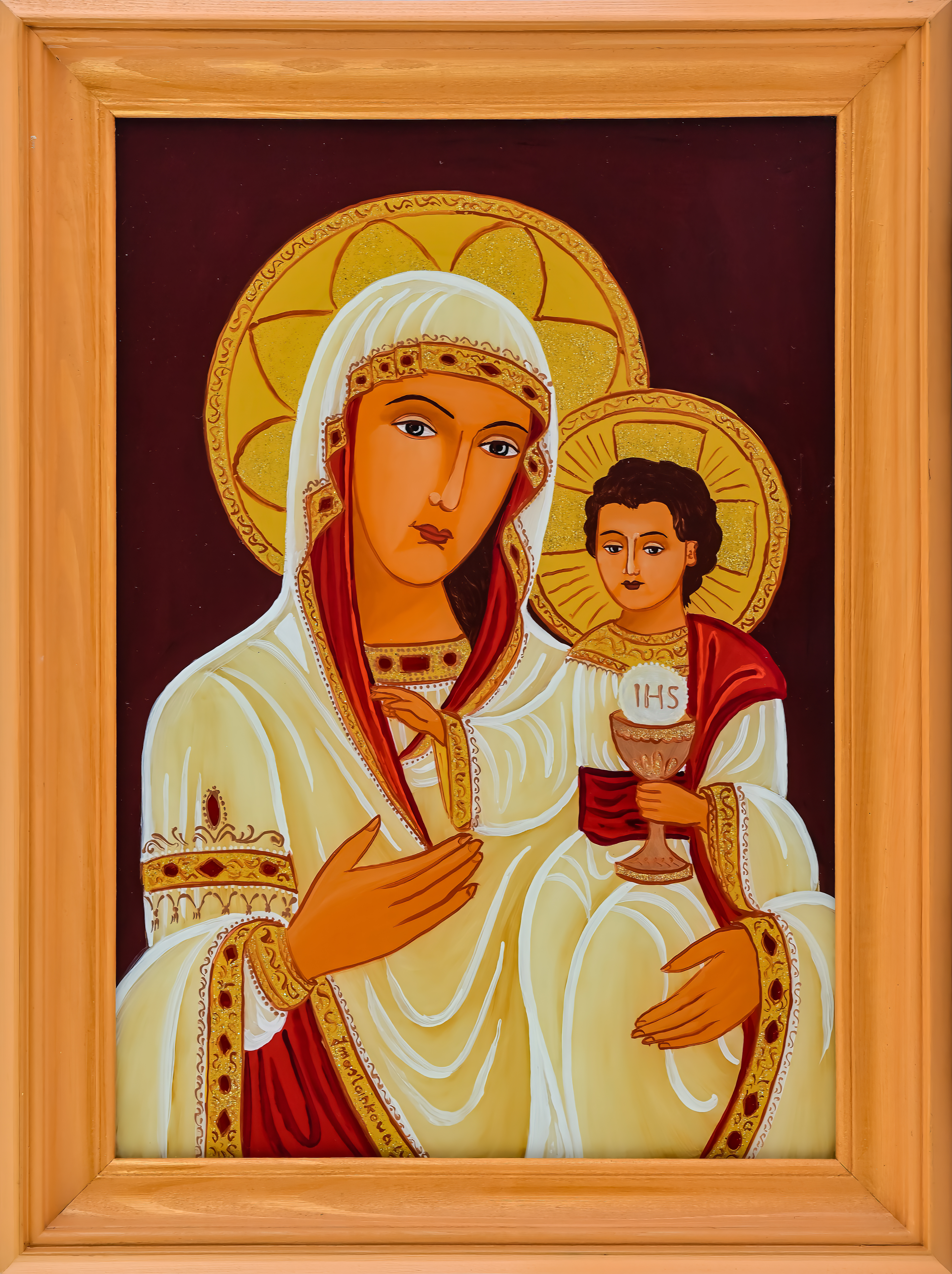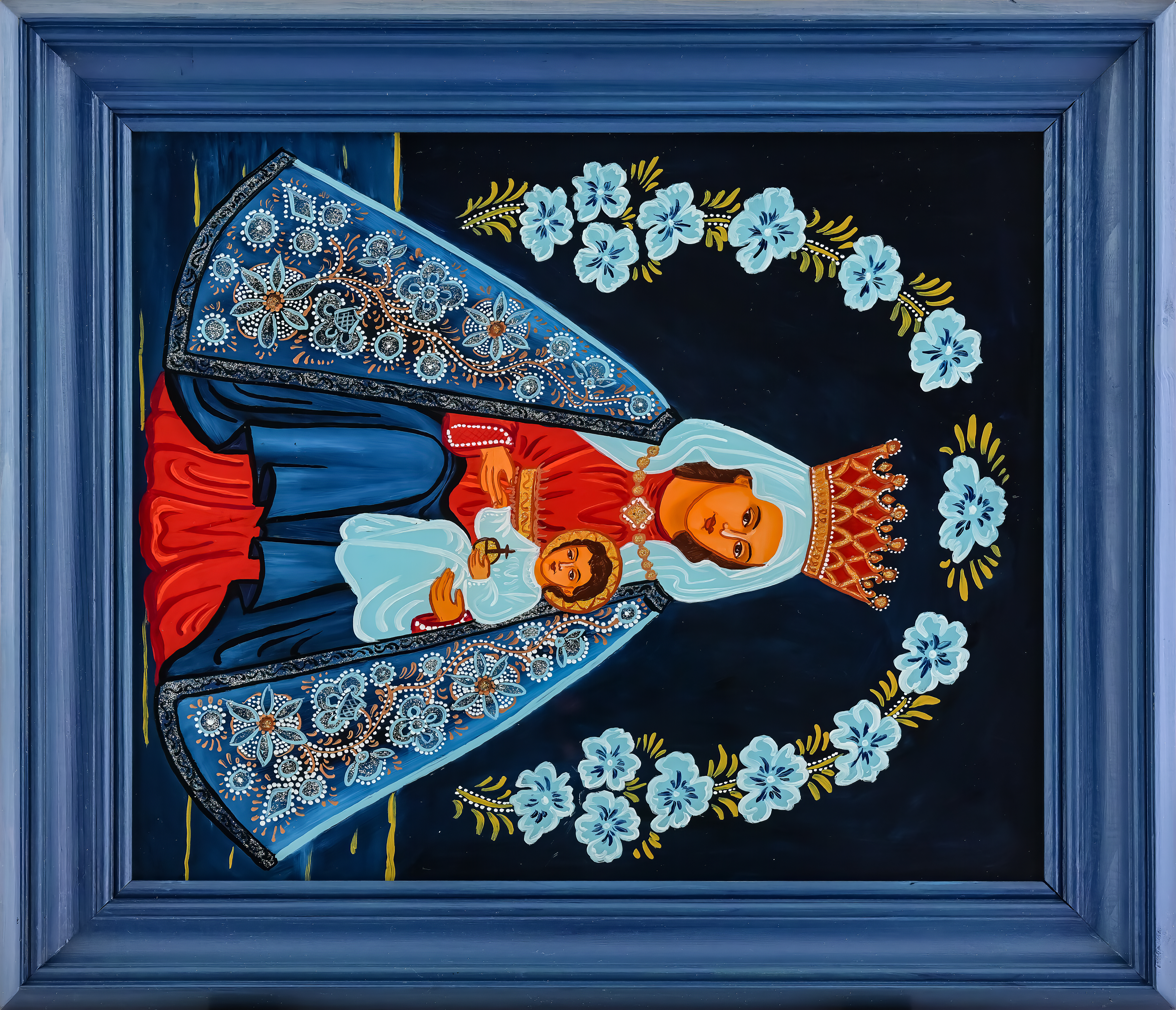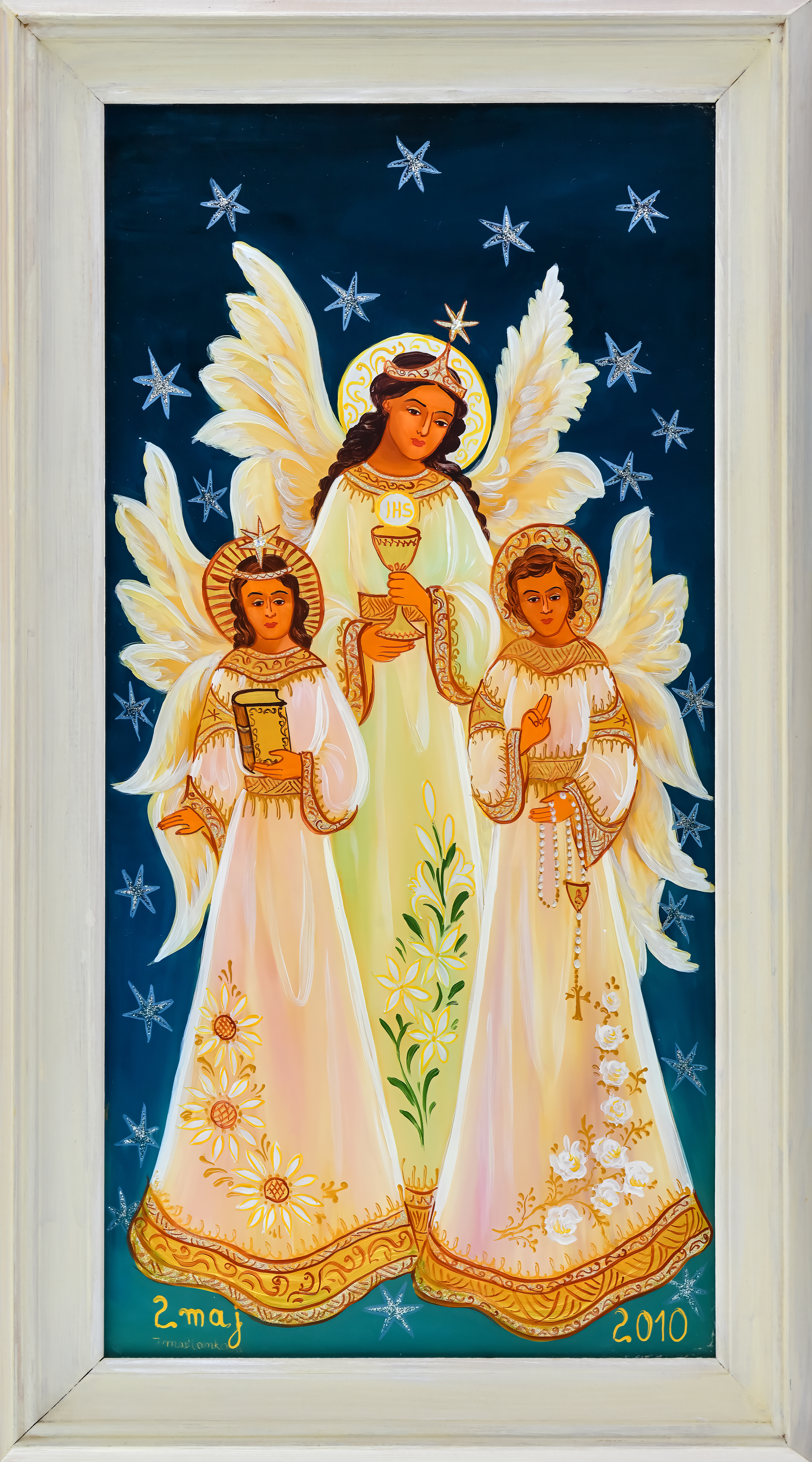Na początku oczywiście były madonny – zrazu bardzo bliskie kanonom sztuki ludowej, chętne do zadomowienia się na listwie białej izby pośród „szklaków”. Radosne bogactwo kolorów, malarski walor świętego tematu – były w Janiny obrazkach jak przeczucie raju. Jej zdobniczy talent kształcił się i rozwijał w cudne ornamenty.