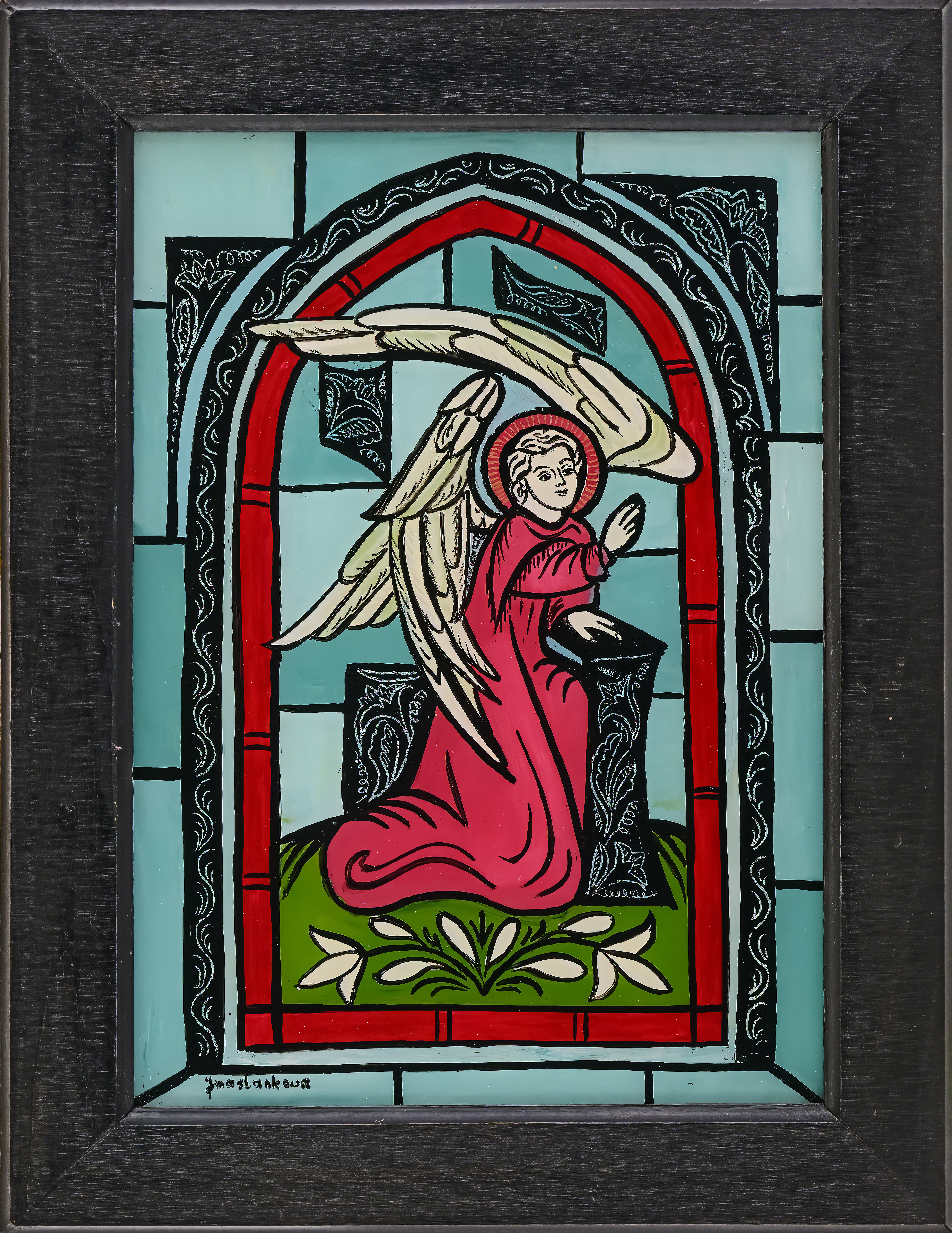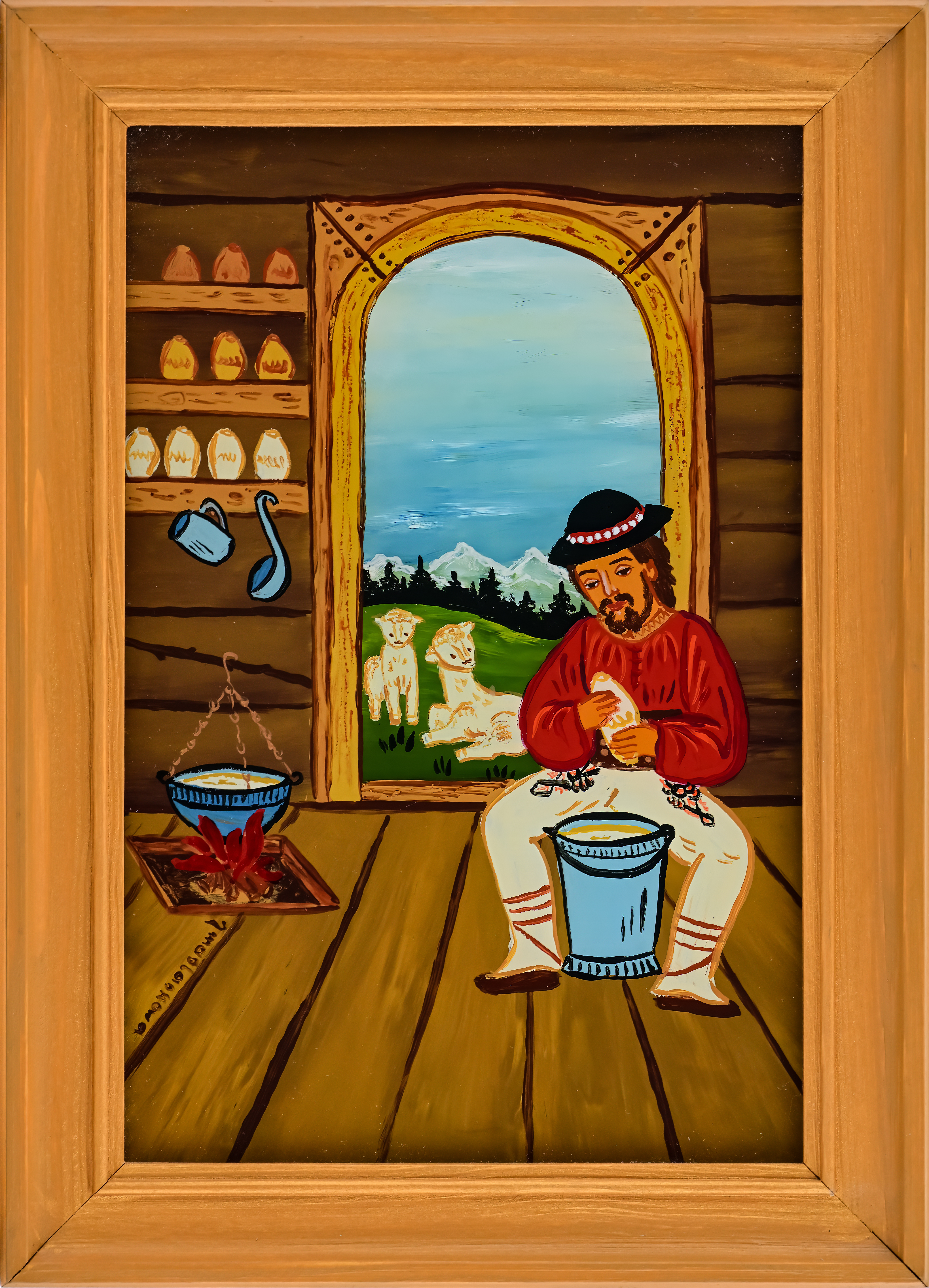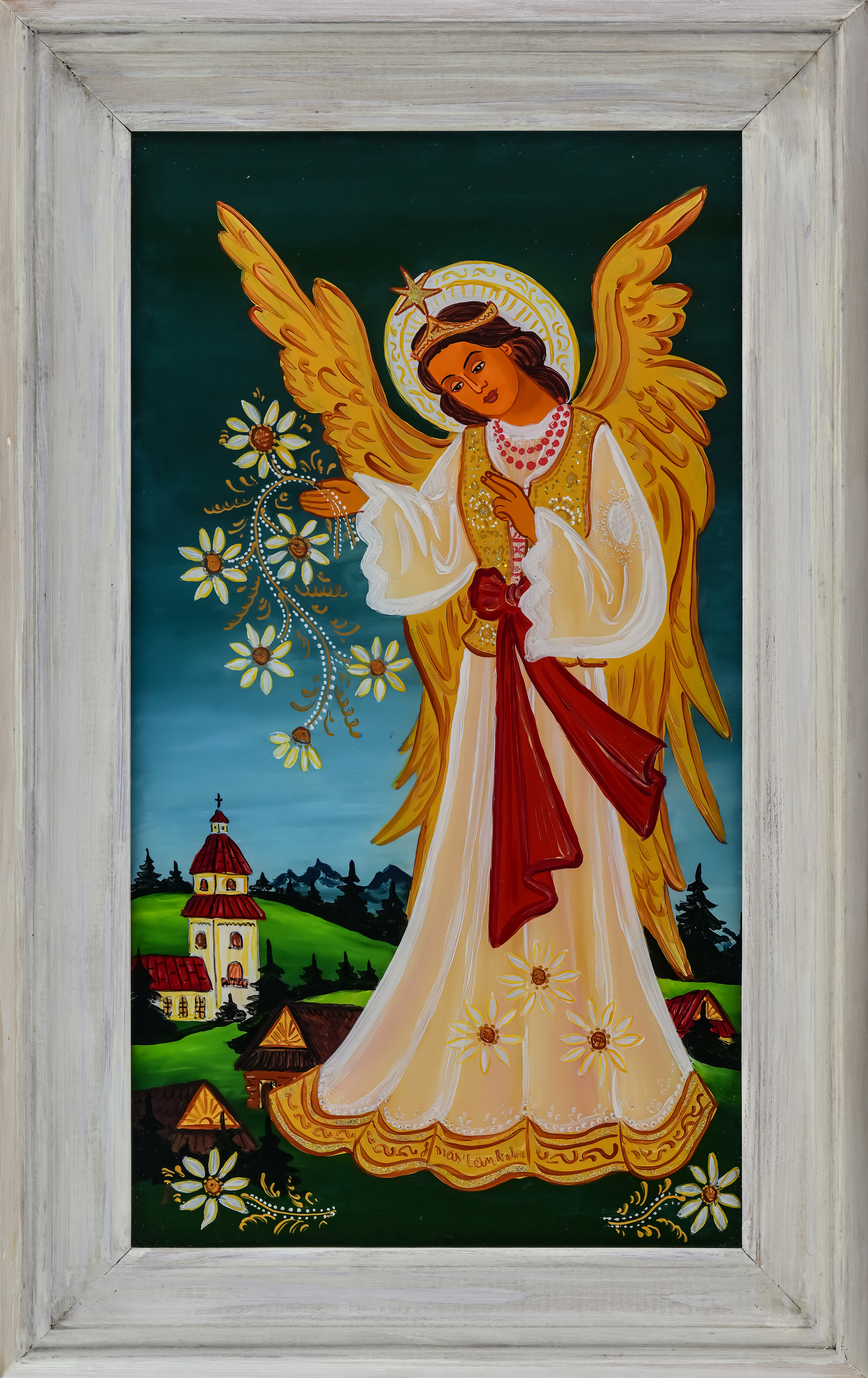 W prostokątach ram powstawały równocześnie scenki z życia górskiej i podgórskiej krainy oraz jej mieszkańców – tych z legend i baśni, ale i tych zanurzonych w krzątaninę dnia powszedniego. W zimowym pejzażu skrzył się nocą śnieg zimnym blaskiem, latem rozkwitał bujnie ogród ziemi, działy się rzeczy piękne i grzeszne, wielkie i małe ludzkie sprawy. Obecność Sacrum znaczyła się wtedy dyskretnie, a dość prosty rysunek i układ postaci nie umykały jeszcze tradycji. Głośniej i wprost mówił Wszechmocny z szyb malowanych dla zilustrowania scen biblijnych.