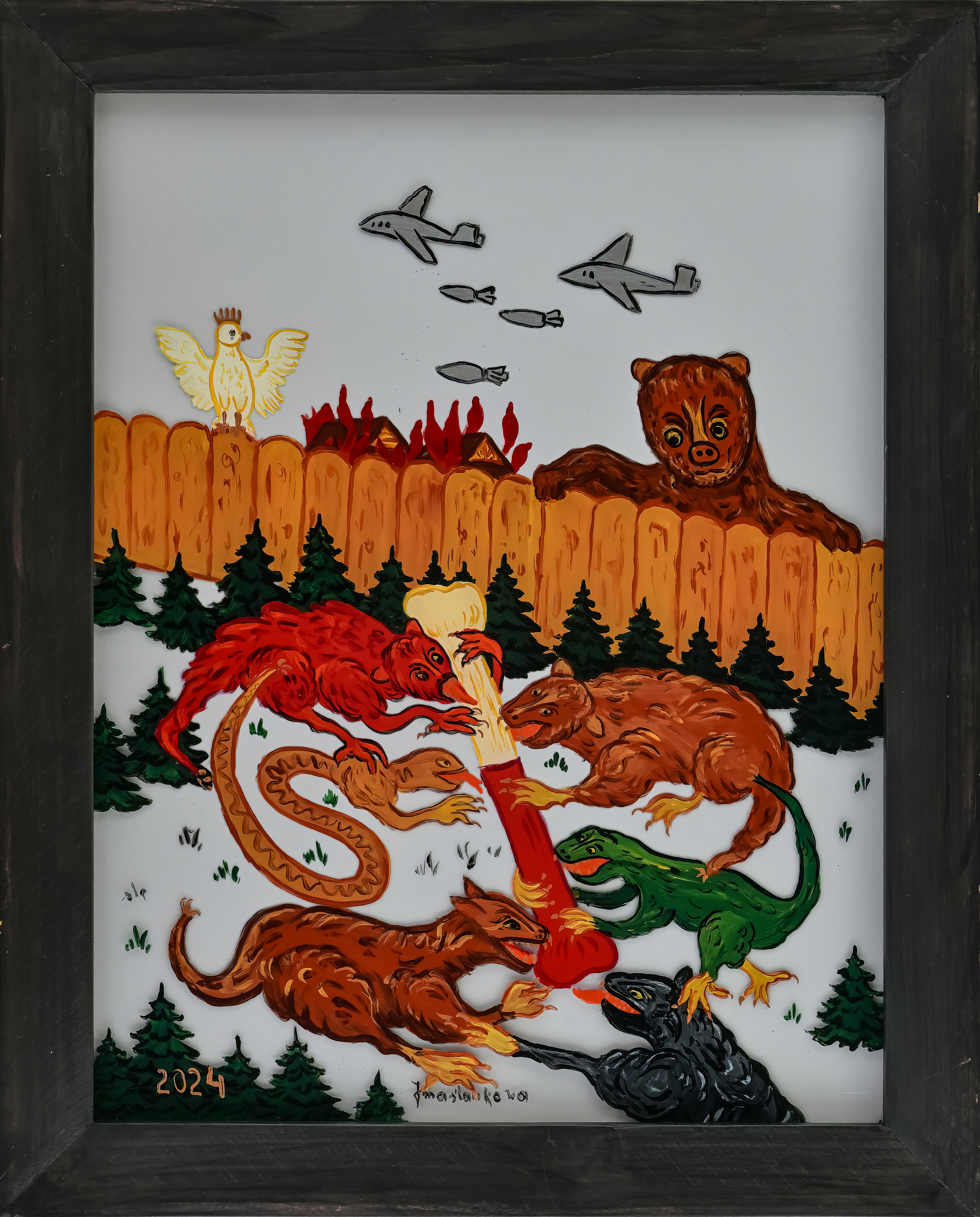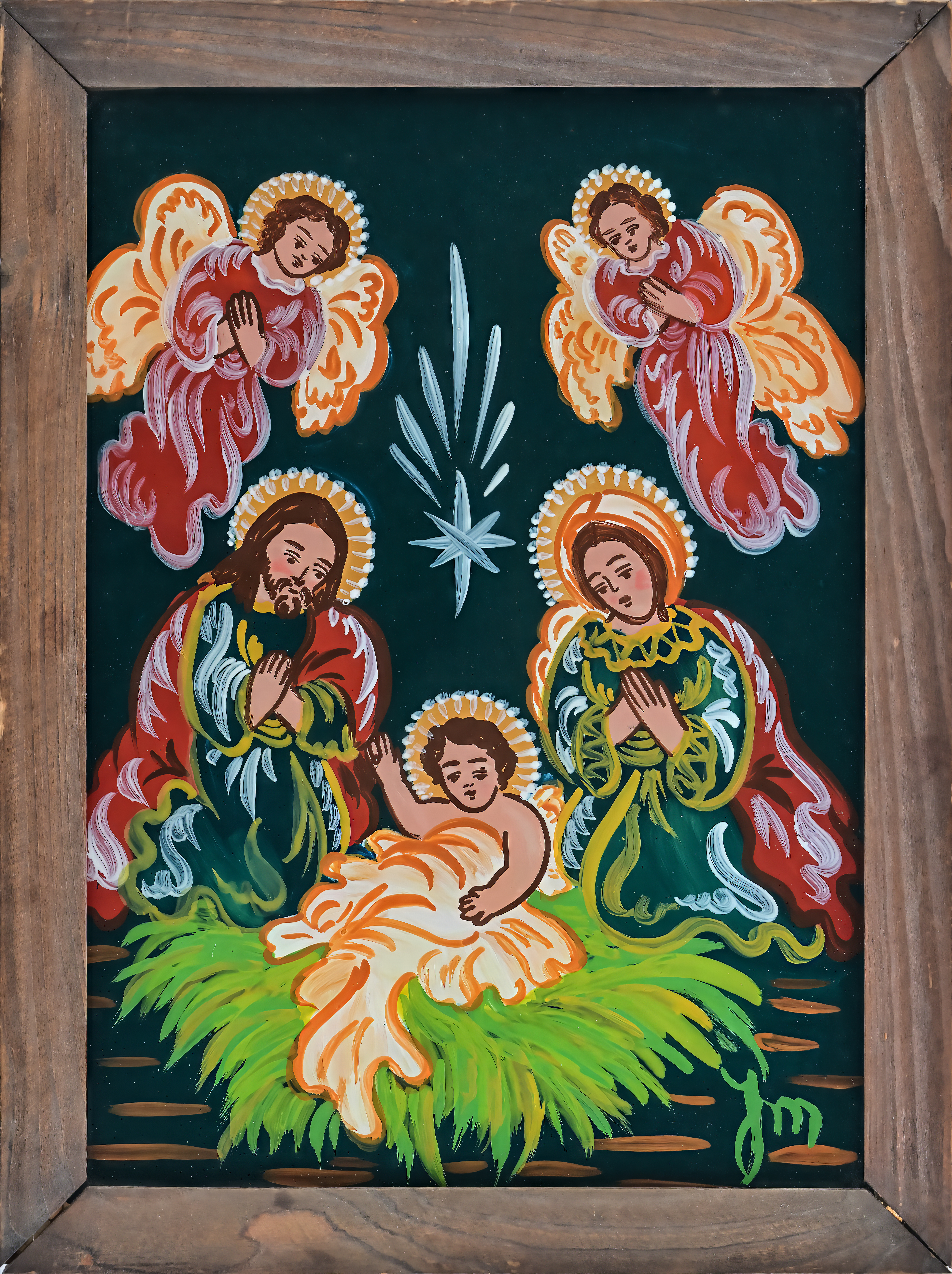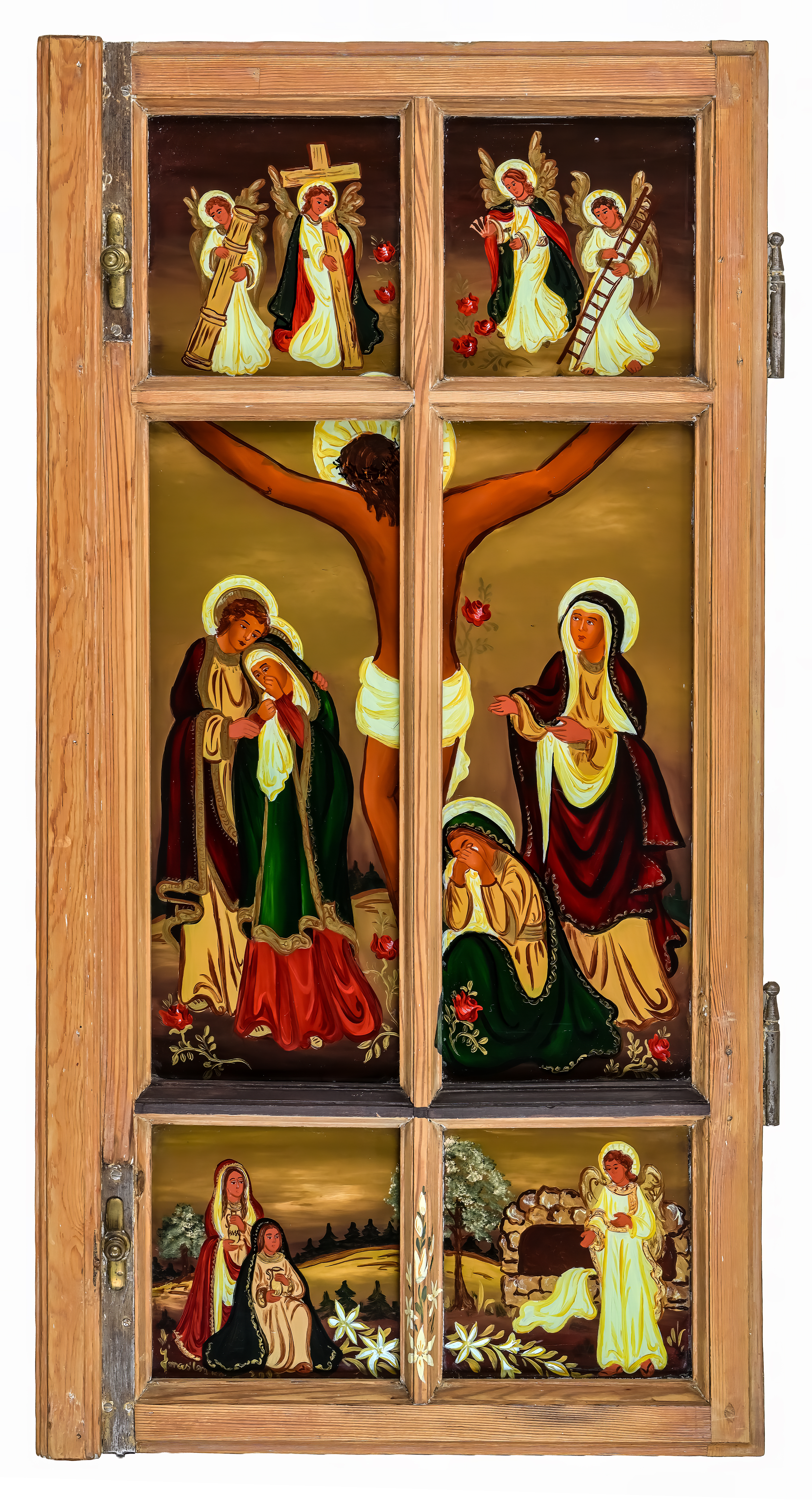 W prostokątach ram powstawały równocześnie scenki z życia górskiej i podgórskiej krainy oraz jej mieszkańców – tych z legend i baśni, ale i tych zanurzonych w krzątaninę dnia powszedniego. W zimowym pejzażu skrzył się nocą śnieg zimnym blaskiem, latem rozkwitał bujnie ogród ziemi, działy się rzeczy piękne i grzeszne, wielkie i małe ludzkie sprawy. Obecność Sacrum znaczyła się wtedy dyskretnie, a dość prosty rysunek i układ postaci nie umykały jeszcze tradycji. Głośniej i wprost mówił Wszechmocny z szyb malowanych dla zilustrowania scen biblijnych.