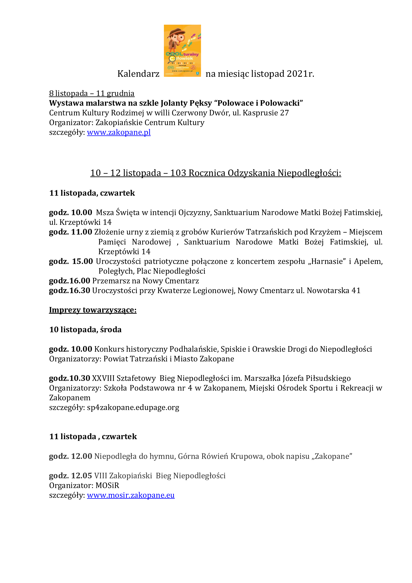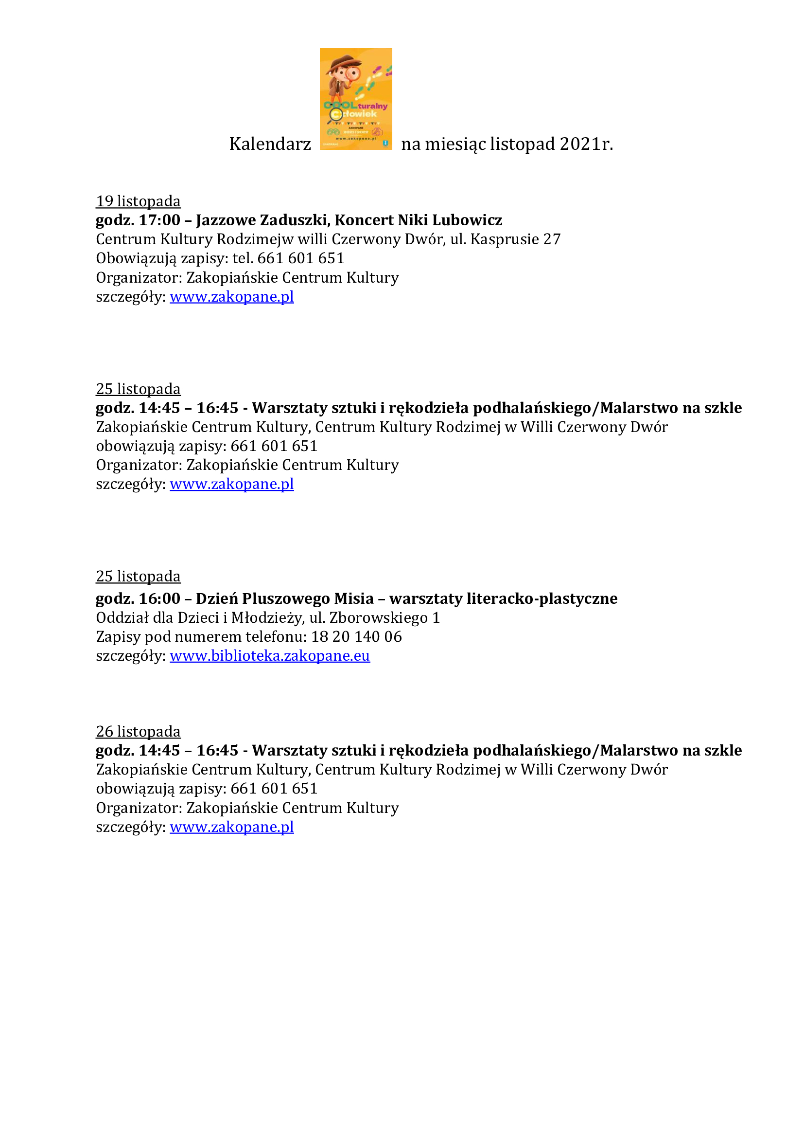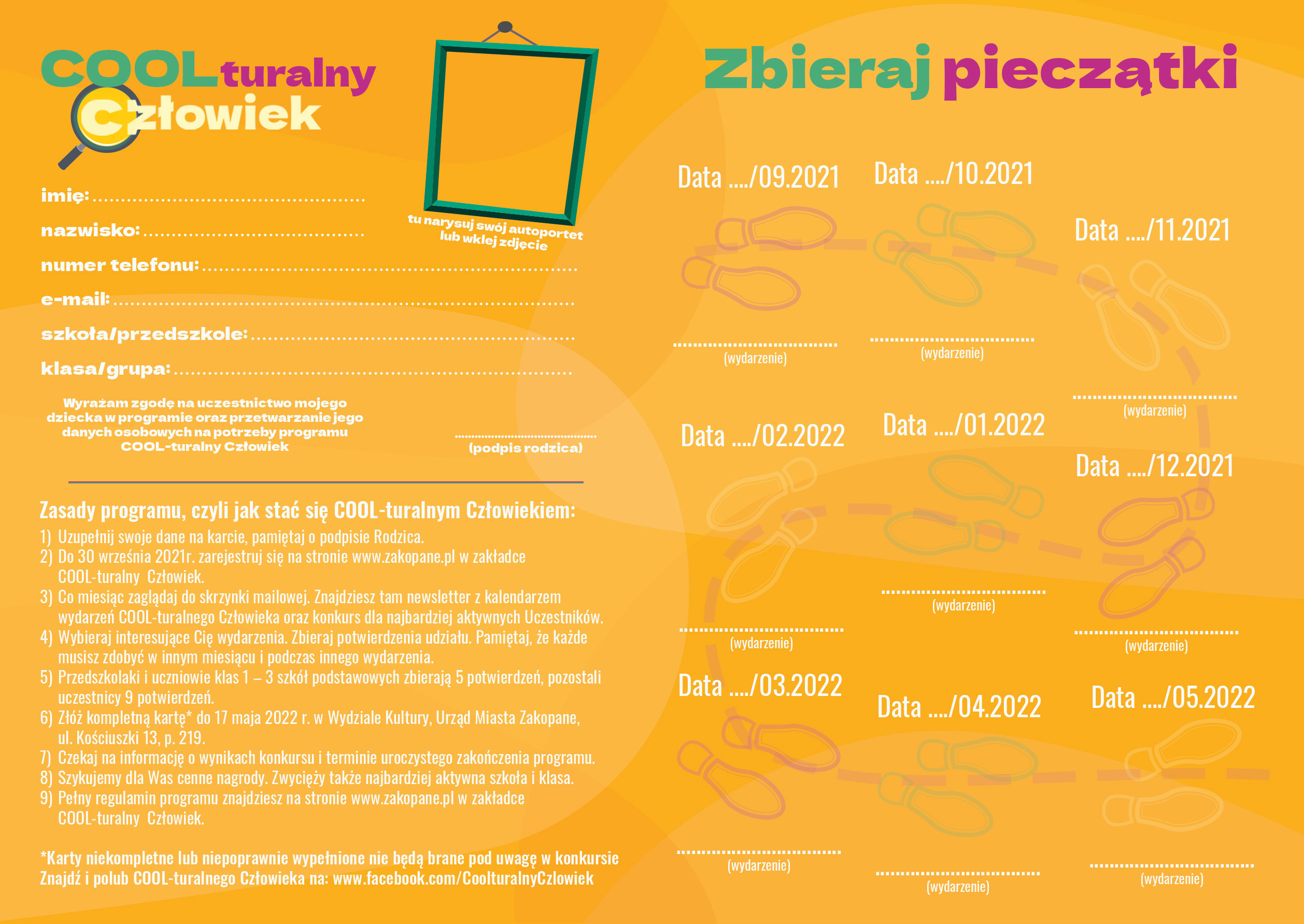 - Pełny regulamin programu znajdziesz na stronie www.zakopane.pl w zakładce COOL-turalny Człowiek