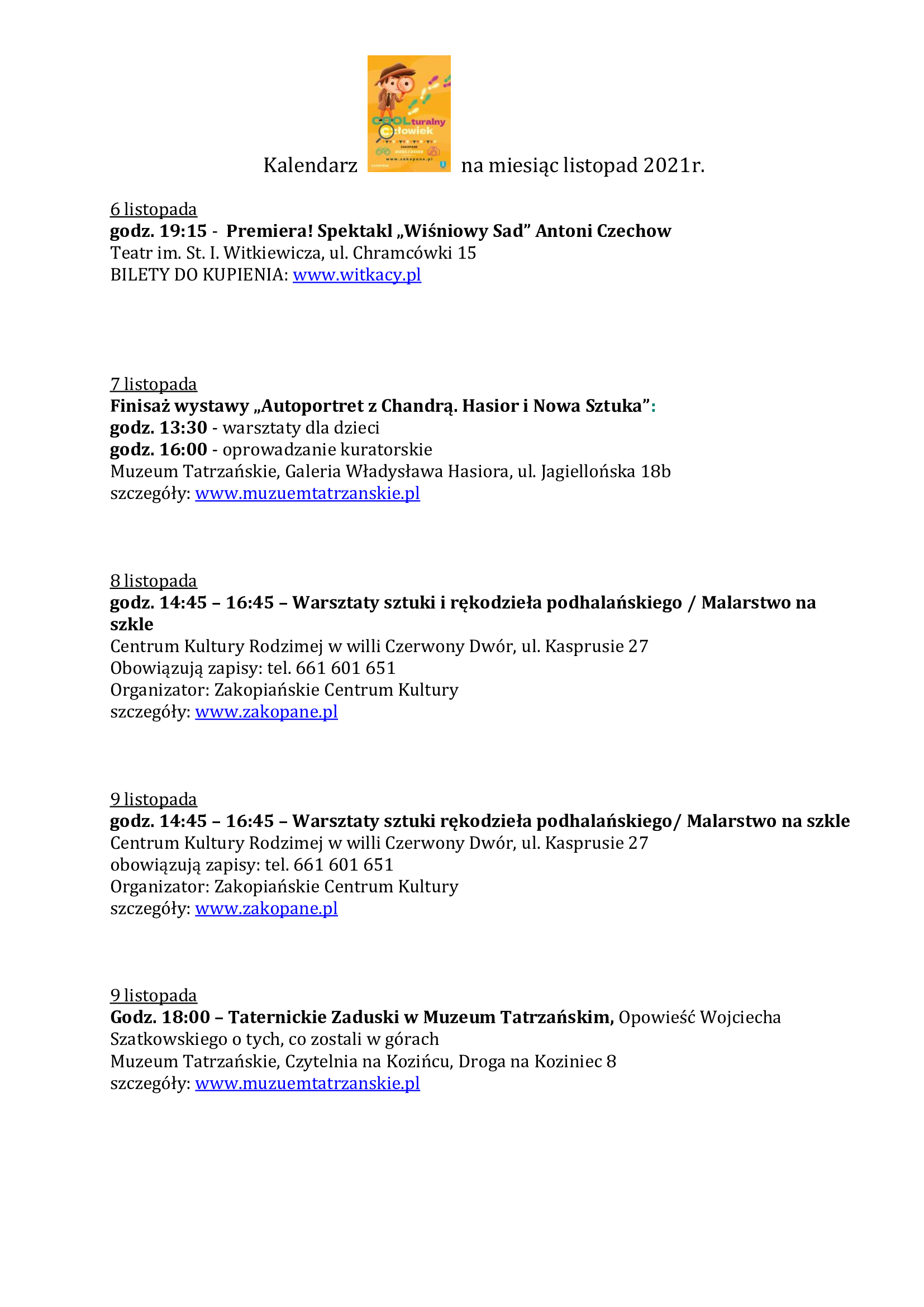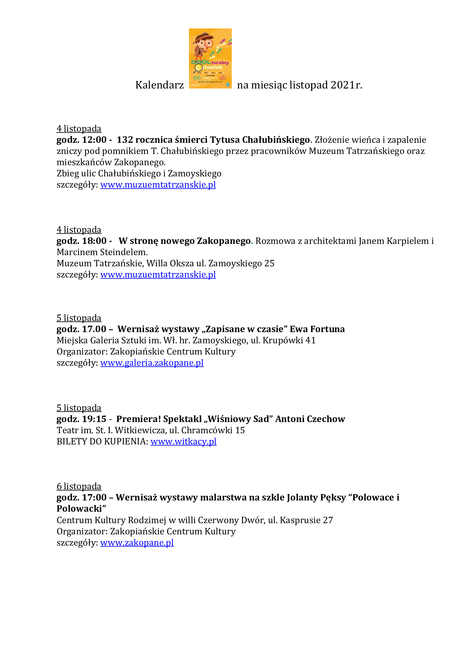 na cały rok na wydarzenia organizowane przez Muzeum Tatrzańskie