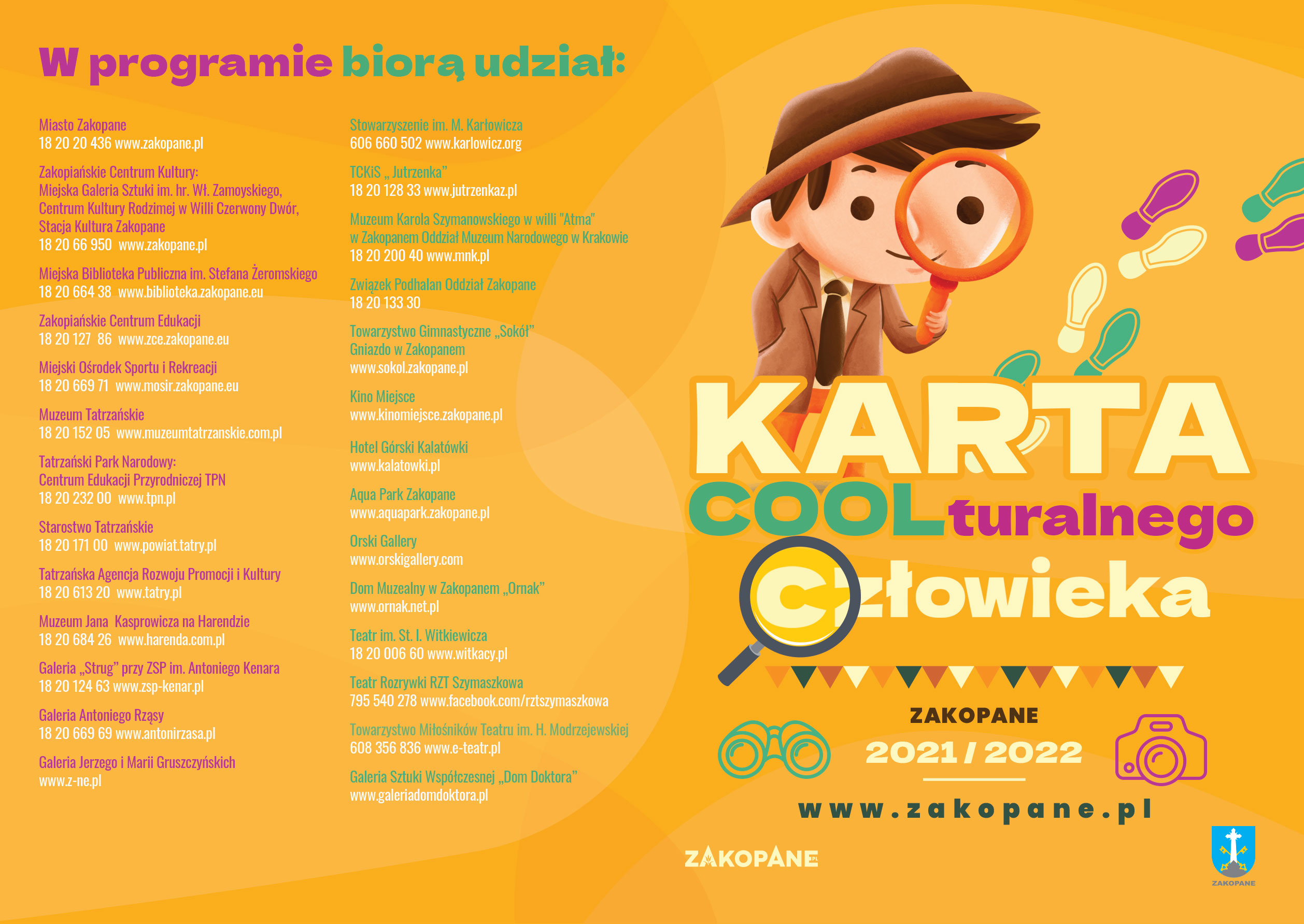 Co roku, od września do maja, Miasto Zakopane prowadzi program „COOL-turalny Człowiek”. Do udziału zapraszamy dzieci od przedszkolaka po maturzystę, uczęszczające zarówno do placówek samorządowych jak również państwowych i niepublicznych na terenie Zakopanego.