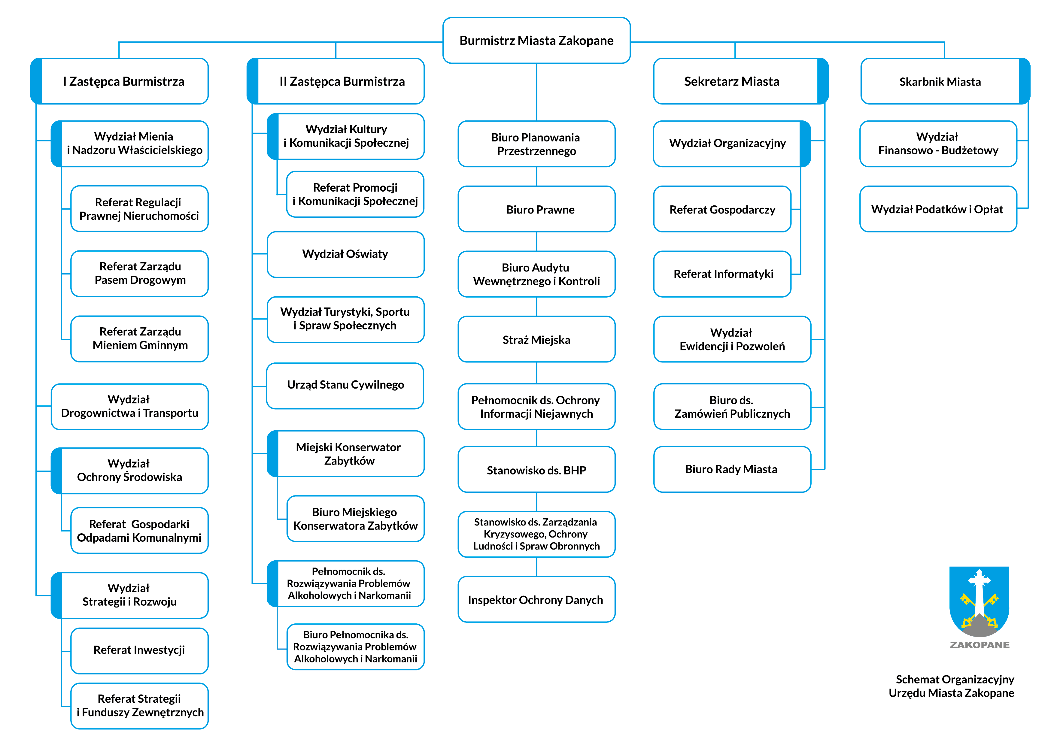 Poniżej schemat struktury organizacyjnej Urzędu Miasta Zakopane.